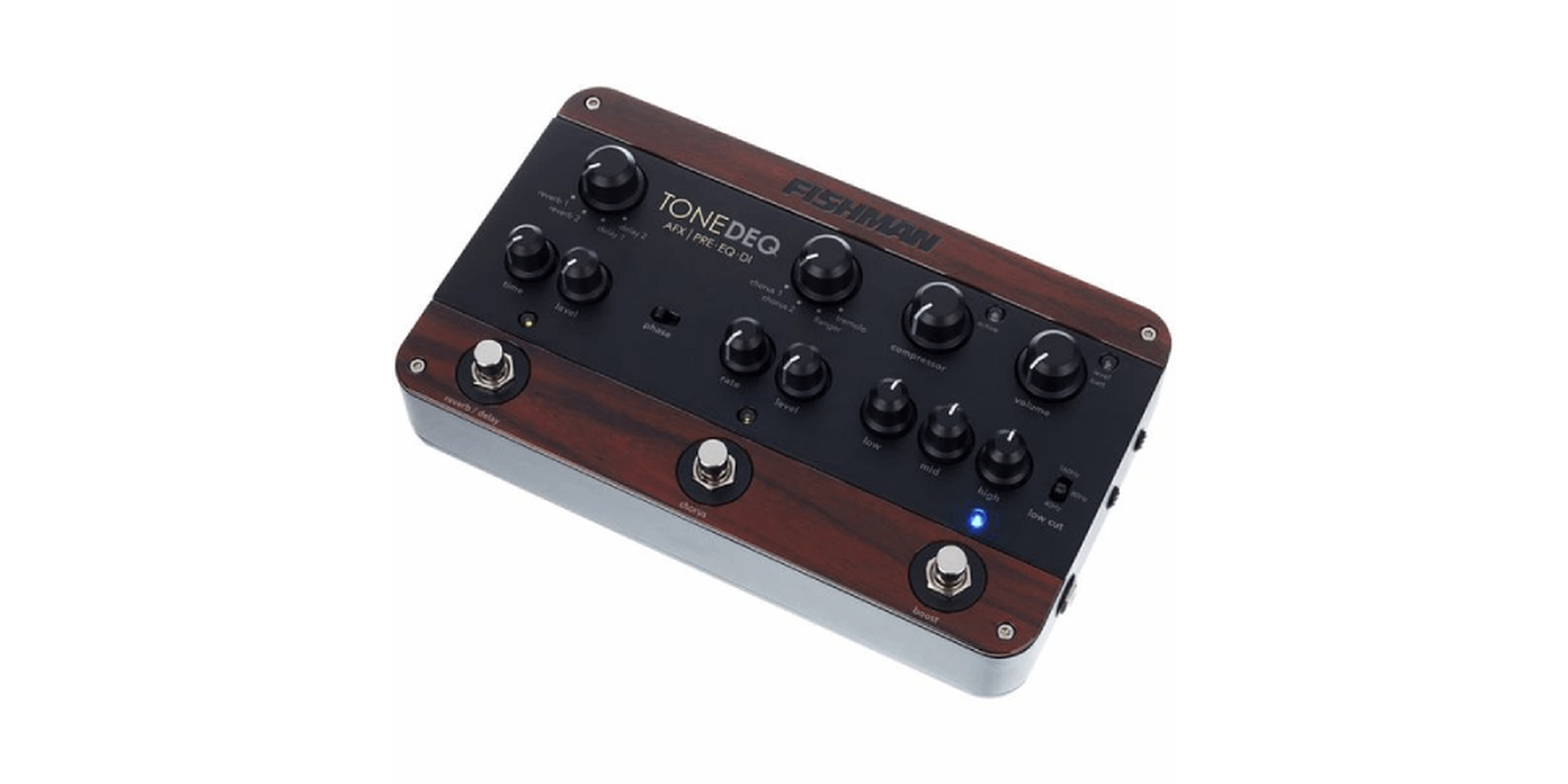 Preamps für Akustikgitarren gibt es schon für unter 100 Euro mit umfangreicher Klangregelung und schaltbaren Effekten wie Hall oder Chorus (z. B. Harley Benton Custom Line Acoustic Preamp). Viele dieser Vorverstärker verfügen auch über Features wie einen Notch-Filter zur Feedback-Unterdrückung, eine schaltbare Phasenumkehr oder eine Boost-Funktion (z. B. Fishman Tone AFX DEQ.