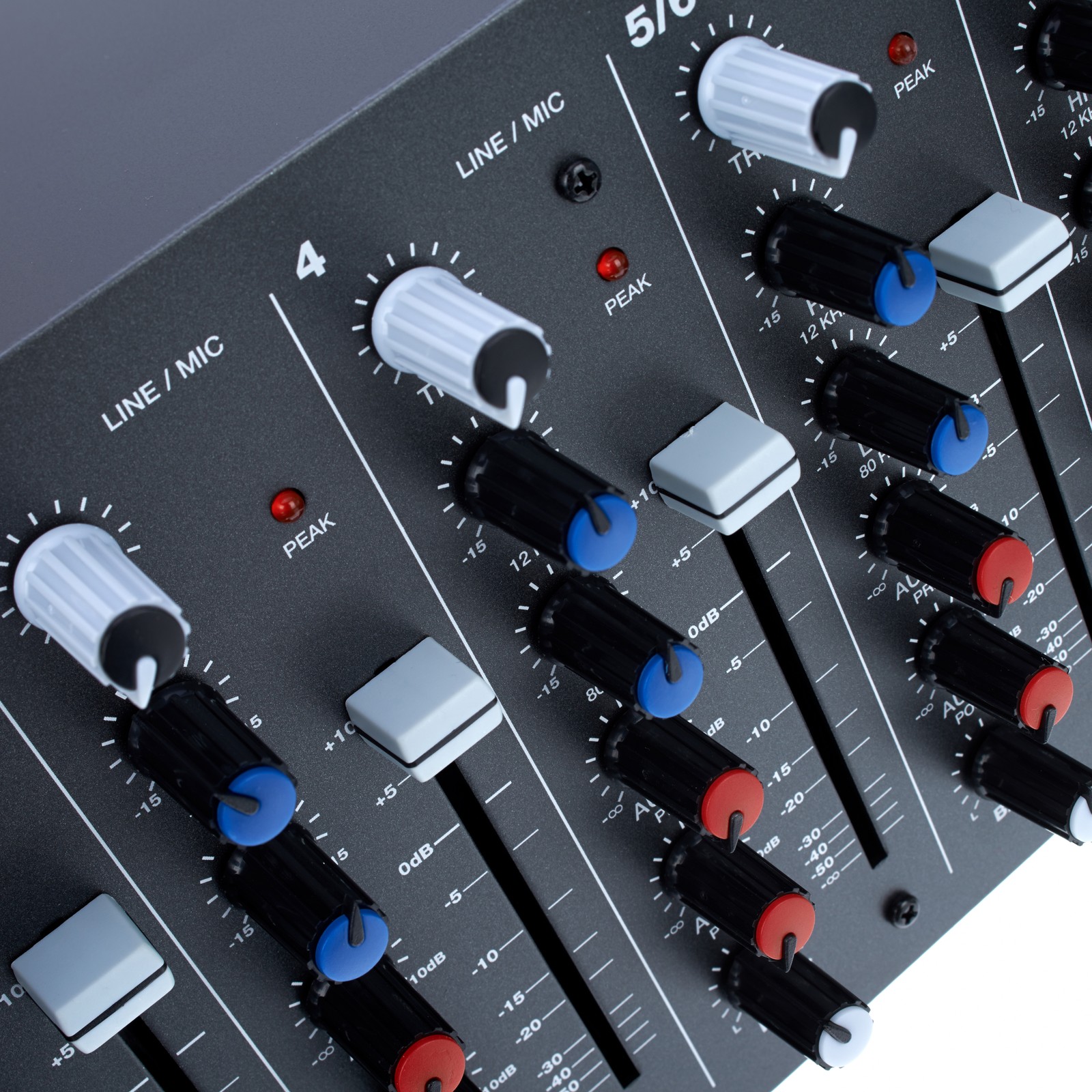Der 19"-Rackmischer Alesis Multimix 10 Wireless überzeugt mit seinem zeitgemäßen Bluetooth-Feature. Das 3HE große Gerät ist geeignet für den Einbau in Bars, in mobile Racks und Studios. Mit vier Mikrofoneingängen, zwei Stereoinputs und seinem Bluetooth-Stereokanal stehen insgesamt sieben zeitgleich verwendbare Audiokanäle zur Verfügung. Zwei Aux-Kanäle, ein regelbarer Kopfhörerausgang, ein 11-stelliges LED-Meter mit Clip-Anzeige und Peak-LEDs in jedem Kanal sind ebenso ein gutes Kaufargument wie die Zweifach-EQs in jedem Channel. Fader mit 60mm Regelweg ermöglichen eine genaue Justierung der Einzelkanäle und des Masterkanals. Dank symmetrischem Master-Ausgang kann der Mixer auch in professionellen Umgebungen eingebunden werden.