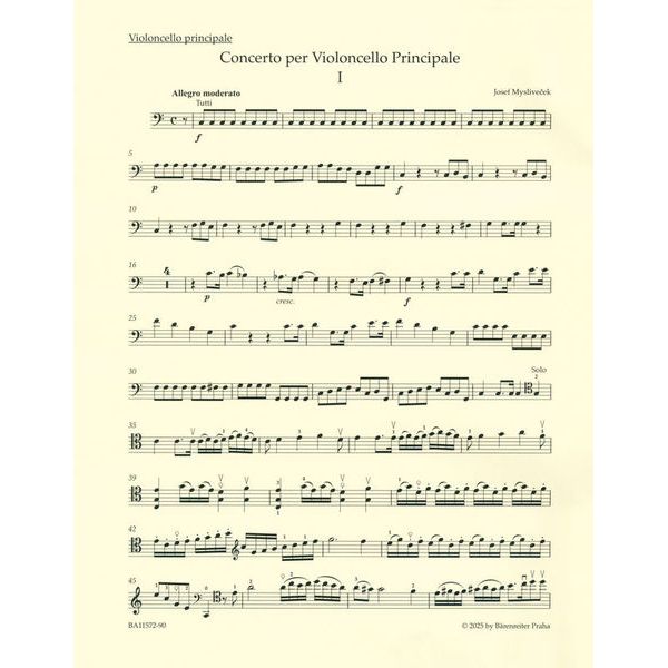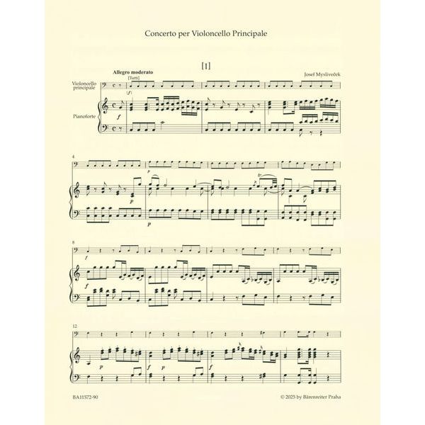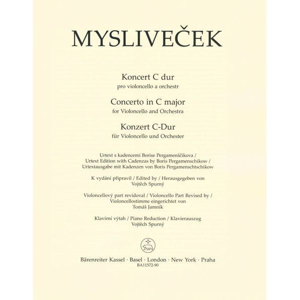 Bärenreiter Myslivecek Cellokonzert C-Dur