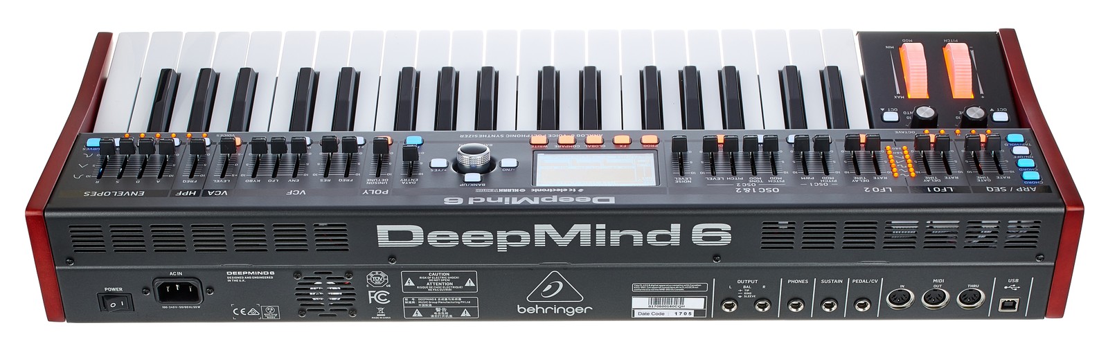 Die kleinere Variante Behringer DeepMind 6 verfügt über halb so viele Stimmen wie das große Modell, besitzt jedoch sonst die gleichen Features, wie zum Beispiel die Modulationsmatrix, den 32-Step-Sequencer und vier hochwertigen FX-Engines. Mit sechs Stimmen reiht sich der Synthesizer zwischen Klassikern aus den 80er Jahren wie der Juno-Serie von Roland oder dem Korg Polysix ein. Und das zu einem unschlagbaren Preis, besonders verglichen mit dem, was für Vintage-Geräte auf dem Gebrauchtmarkt verlangt wird. Das kompakte 37-Tasten Keyboard kann auf der Bühne wie auch im Studioeinsatz für Klangflächen, rhythmisch modulierte Sequenzen und Arpeggios sowie prägnante Leadsounds eingesetzt werden. Mit seinem analogen Signalpfad liefert er den beliebten, warmen Klangcharakter und die vier FX-Engines mit Algorithmen von TC Electronic und Klark Teknik sind speziell für die Live-Anwendung eine nützliche Erweiterung, die zusätzliches Equipment spart.