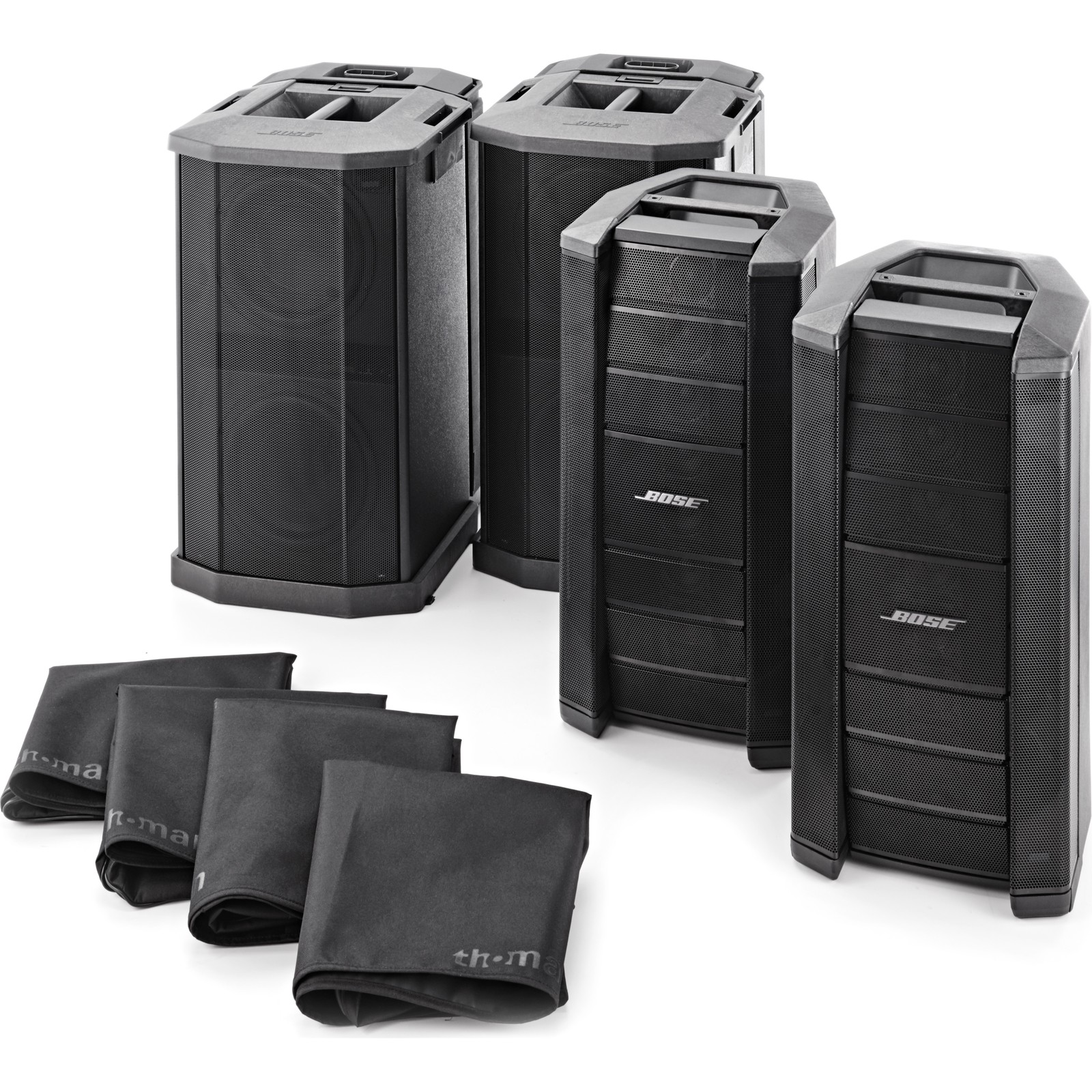 Das Bose F1 Complete Bundle ein besonders leistungsstarkes und flexibles Stereo-Array inklusive Subwoofern mit hohem Schallpegel für Bands aller Stilrichtungen, Solokünstler und mobile DJs. Auch in Kirchen, Schulen und an Universitäten kann es eingesetzt werden. Das Design wurde übrigens mit dem red dot award ausgezeichnet. Der Klang ist geprägt durch eine natürliche Stimmwiedergabe - auch bei hohen Lautstärken - sowie enorme Klarheit im Mittenbereich und warme Subbässe mit 1000 Watt Leistung und einem Gewicht von nur knapp 25 kg. Der vertikale Abstrahlwinkel der Tops kann dem jeweiligen Raum angepasst werden. Die Arrays sind 665 mm hoch, 334 mm breit und 373 mm tief. Das Anschlussfeld mit sämtlichen Steckverbindungen befindet sich im unteren Teil der Gehäuserückseite. Die Tieftöner verfügen über einen integrierten Halter für die Arrays. In den Kabelkanälen der stabilen zweiarmigen Befestigungen können die Leitungen zu den Tops nahezu unsichtbar verlegt werden.