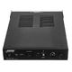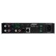 Über den Drehregler auf der Vorderseite können die Menüpunkte Volume für die Lautstärke, Treble für die Höhen im Klang und Bass ausgewählt werden. Nach einem Drücken des Drehreglers lassen sich dementsprechende Einstellungen tätigen. Möchte man auf weitere Funktionen zugreifen, so hält man den Drehregler mindestens drei Sekunden lang gedrückt. Anschließend können unter anderem EQ-Presets gewählt, der Ausgang zwischen Mono und Stereo geschaltet, das Paging-Signal sowie Duck und Mix des angeschlossenen Mikrofons eingestellt, der Basspegel automatisch über einen dynamischen EQ angepasst und Bluetooth-Einstellungen getätigt werden. Für den Anschluss von Lautsprechern befinden sich zwei umgekehrte 2-Pol-Euroblock-Buchsen auf der Rückseite. Zudem ist ein Cinch-Stereopaar als AUX-Ausgang vorhanden. Über eine Verbindung zu einem Computer können mittels der USB-C-Buchse Software-Updates erfolgen.