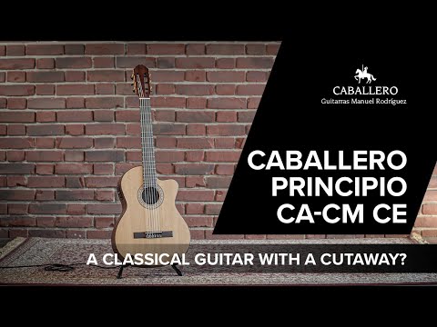 Die Caballero Principio CA-CM CE Cutaway ist eine Klassik- oder Nylonsaitengitarre in 4/4-Größe mit einer Mensur von 65cm und einer Sattelbreite von 52mm. Die Decke besteht aus massivem Zedernholz; Boden und Zargen aus der Mahagoniart Sapelli. Als Besonderheit weist der Korpus der Principio ein Cutaway auf sowie ein Tonabnehmersystem für den Einsatz auf einer Bühne. Der Hals wurde aus der Holzart Okumé, auch Gabun-Mahagoni genannt, gefertigt und mit einem am Sattel 52 Millimeter breiten Griffbrett aus Palisander versehen. Damit sich nichts verzieht, ist er mit Carbonstäben verstärkt. Nicht selbstverständlich ist, dass die ab Werk aufgezogenen Saiten von guter Qualität sind; es handelt sich um Saiten des deutschen Herstellers Hannabach mit einer g-Saite aus Fluorcarbon.