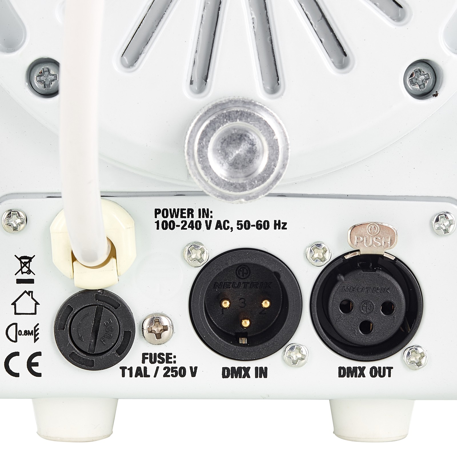 Hier kommt ein kleiner Spezialist für Warmweiß, der klar abgegrenzte Lichtakzente auf kleinen Bühnen und in Locations mit geringem Abstand zum beleuchteten Objekt bietet. Was die Bedienmöglichkeiten angeht, kommt der LED-Spot im weißen Gehäuse ganz schön groß raus, versteht er sich doch neben dem Stand-Alone-Betrieb und der DMX-Ansteuerung auch auf die Einbindung in ein Setting mit Remote Device Management. Farben können mit diesem Scheinwerfer zwar nicht gemischt, wohl aber Farbfolien in den mitgelieferten Filterrahmen eingelegt werden. Auch ein Torblendenkranz liegt bereits im Paket. Wer statt einer Stufenlinse einen PC-Scheinwerfer mit seinem klar definierten Lichtkegelrand sucht und auf die Leistungsstärke größerer Modelle verzichten kann, profitiert von einem Gehäuse mit besonders geringer Tiefe, das übrigens als Cameo TS 40 WW LED Theater-Spot auch in schwarz erhältlich ist.