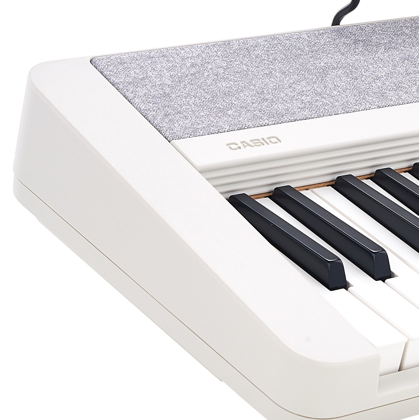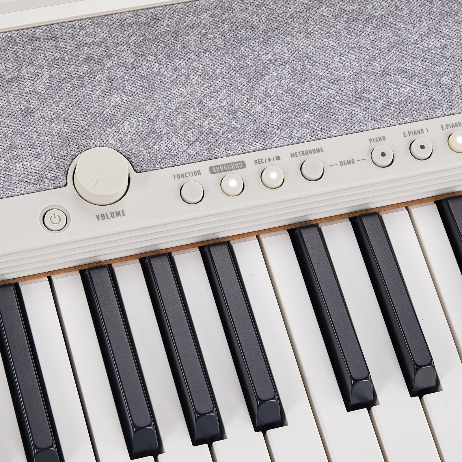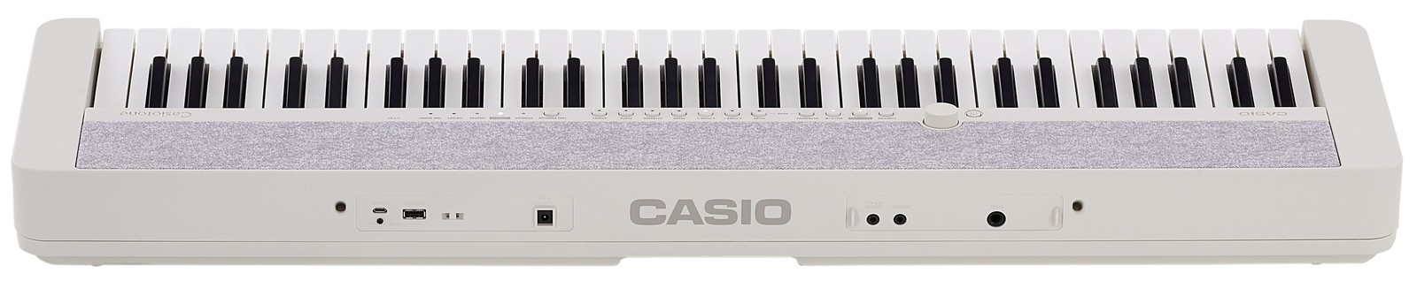 Mit dem CT-S1 WE stellt Casio ein Keyboard im minimalistischen und freundlich-hellen Design vor – schließlich ist weniger ja bekanntlich oft mehr. Das Instrument verfügt über 61 anschlagsdynamische Tasten, über die ebenso viele Sounds gespielt werden können. Außerdem lässt sich ein Pedal anschließen, mit dem man noch mehr Kontrolle über die in 64-stimmiger Polyphonie ertönenden Sounds hat. Verfeinert werden kann der Klang mit den internen Effekten Chorus, Delay und Reverb. Die schlanken Maße des Keyboards lassen es in jedem Raum einen Platz finden. Beim Spielen gewährt es indessen die maximale Flexibilität, die mitunter dank der vornehmbaren Einstellungen von Stimmung, Sustain-Zeit und MIDI-Out-Kanälen zustande kommt. Mit dem CT-S1 WE finden alle Pianisten – ob Anfänger oder Fortgeschrittene – ein zuverlässiges Instrument zum Üben und Komponieren eigener Musikstücke.