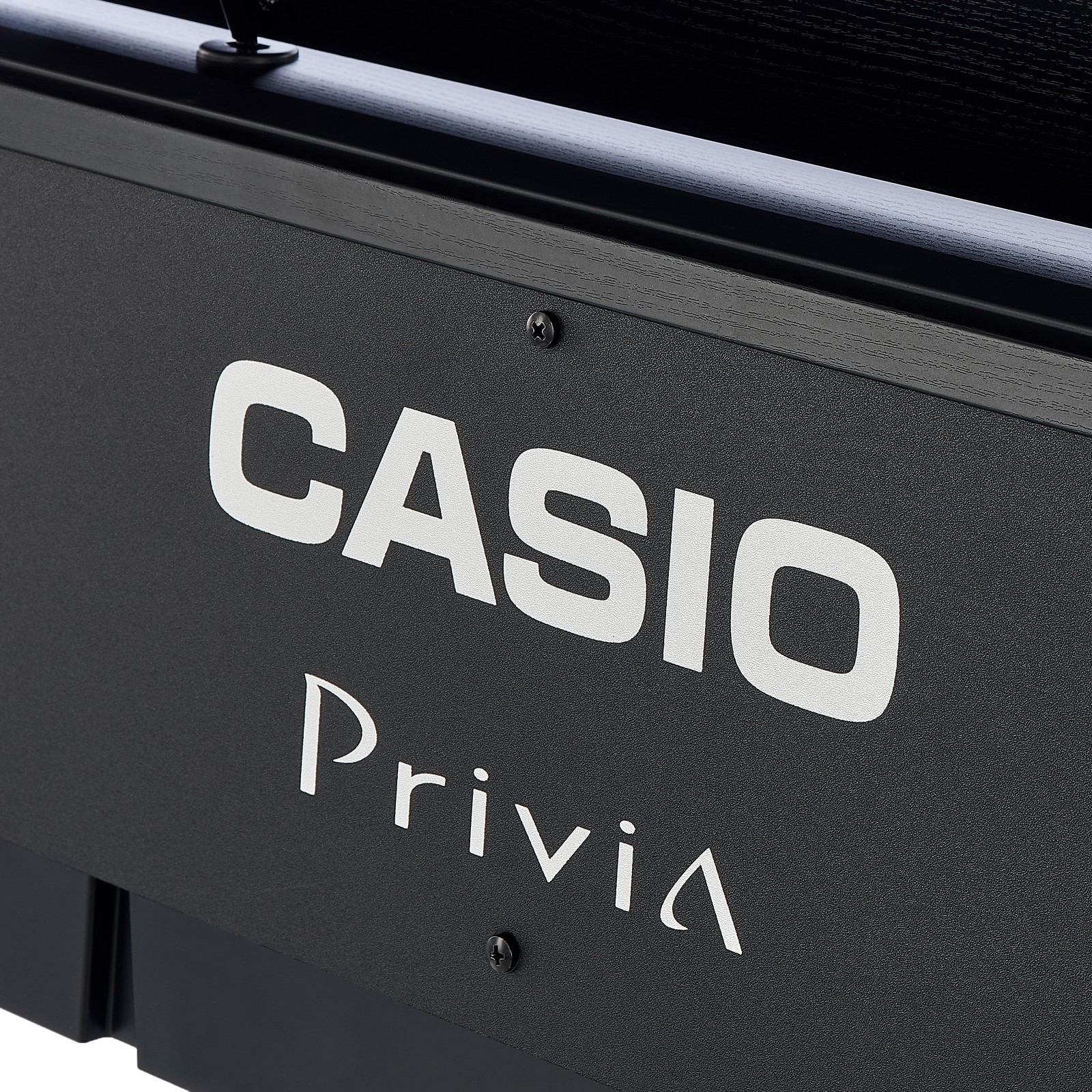 Das Casio PX-870 BK Privia Set zaubert echtes Flügelfeeling ans Ohr, selbstverständlich für Klassik, genauso für Jazz oder Rockmusik. Aufbauend auf dem Privia-Modell PX-770 bietet das PX-870 eine umfangreichere Ausstattung für überzeugenden Flügelklang. Herausragend in dieser Preisklasse ist die große Polyphonie. Die leistungsstarken Lautsprecher können neben Kopfhörern auf Wunsch gleichzeitig genutzt werden. Wahlweise wird der Sound extra für Kopfhörer optimiert. Ein USB-Anschluss eröffnet Möglichkeiten zur Aufnahme und Wiedergabe von Songs. Auch der integrierte MIDI-Recorder steht für’s Abspielen und Recording bereit. Wer das Digitalpiano mit einem Computer verbindet, kann mit diesem in beide Richtungen MIDI-Daten austauschen. Und auf Wunsch tritt ein Orchester als Klavierbegleitung auf. Passend zum Piano enthält das Set eine Klavierbank sowie einen ohrumschließenden Kopfhörer.