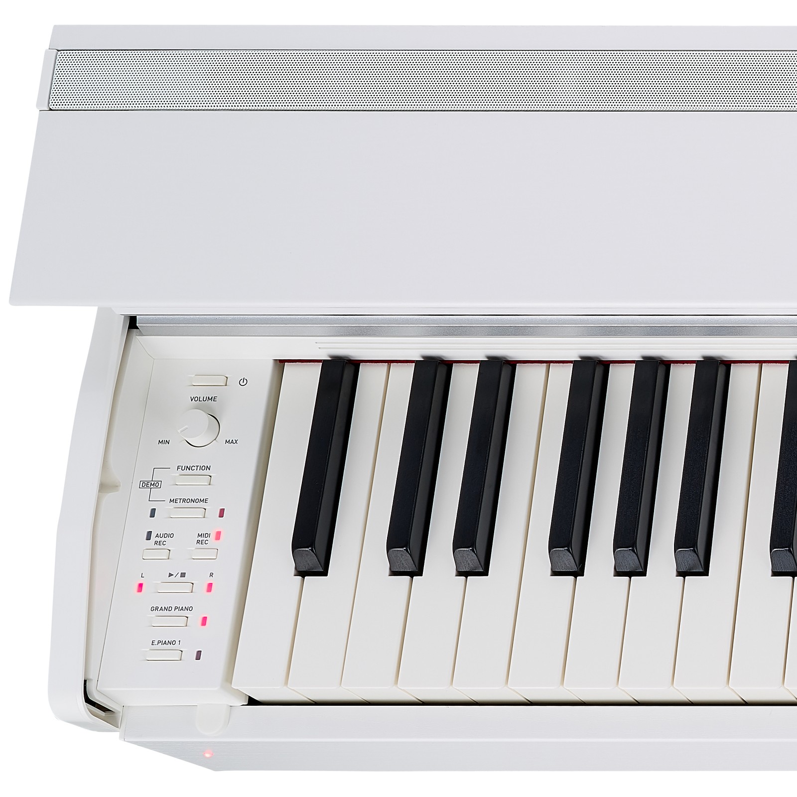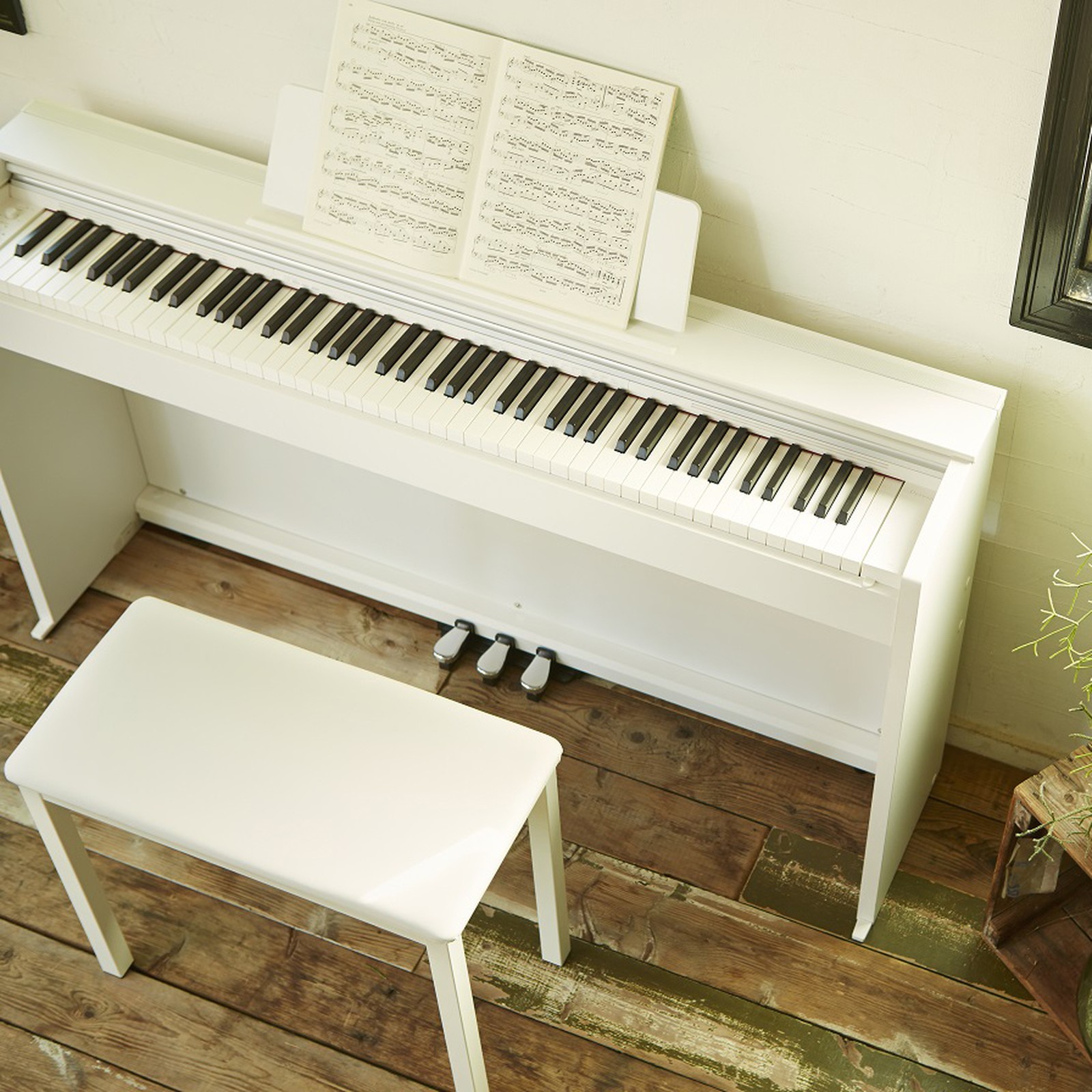 Das Casio PX-870 WE Privia zaubert echtes Flügelfeeling ans Ohr, selbstverständlich für Klassik, genauso für Jazz oder Rockmusik. Aufbauend auf dem Privia-Modell PX-770 bietet das PX-870 eine umfangreichere Ausstattung für überzeugenden Flügelklang. Herausragend in dieser Preisklasse ist die große Polyphonie. Die leistungsstarken Lautsprecher können neben Kopfhörern auf Wunsch gleichzeitig genutzt werden. Wahlweise wird der Sound extra für Kopfhörer optimiert. Ein USB-Anschluss eröffnet Möglichkeiten zur Aufnahme und Wiedergabe von Songs. Auch der integrierte MIDI-Recorder steht für’s Abspielen und Recording bereit. Wer das Digitalpiano mit einem Computer verbindet, kann mit diesem in beide Richtungen MIDI-Daten austauschen. Und auf Wunsch tritt ein Orchester als Klavierbegleitung auf.
