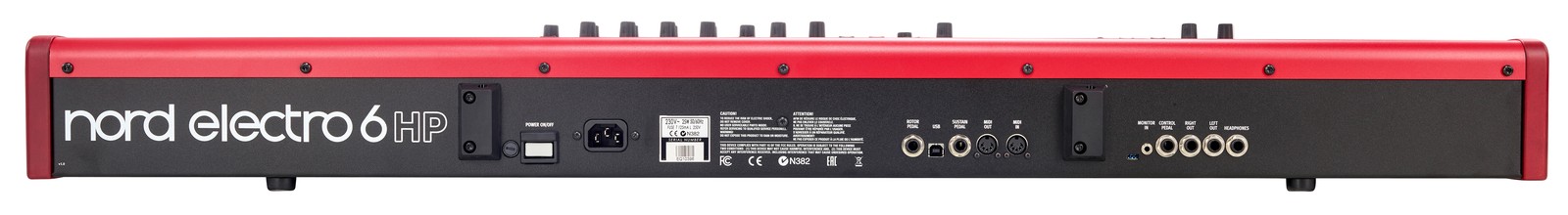 Den Nord Electro 6 gibt es in verschiedenen Ausführungen: mit einer 61er-/73er-Waterfalltastatur (6 D 61/73) und echten Zugriegeln oder als 6 HP mit 73 Tasten Nord Hammer Action Portable (also einer gewichteten Tastatur mit Hammermechanik) und LED-Drawbars. Waterfall bedeutet, dass es sich um halbgewichtete Tasten ohne die für Klaviere typische kleine „Lippe“ am Tastenende handelt. Waterfalltastaturen erlauben es dem geübten Hammondspieler, typische Glissandi mit dem Handballen, dem Ellenbogen oder dem Fingerrücken einzustreuen, um seine Performance aufzupeppen. In diesem Text behandeln wir jedoch den Nord Electro 6 HP, der mit seiner gewichteten Tastatur eher Keyboarder anspricht, die vom Klavier und nicht von der Orgel kommen.