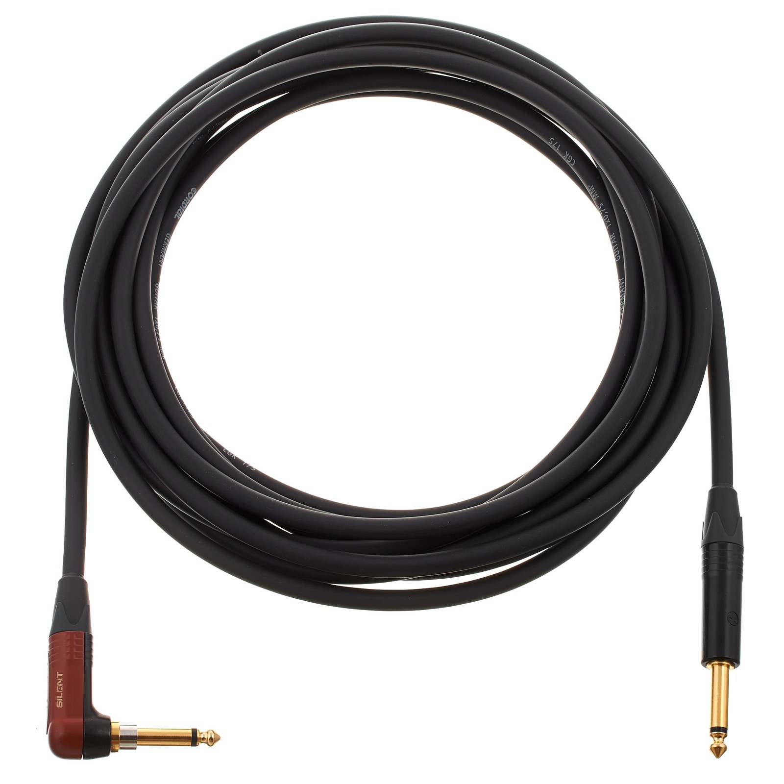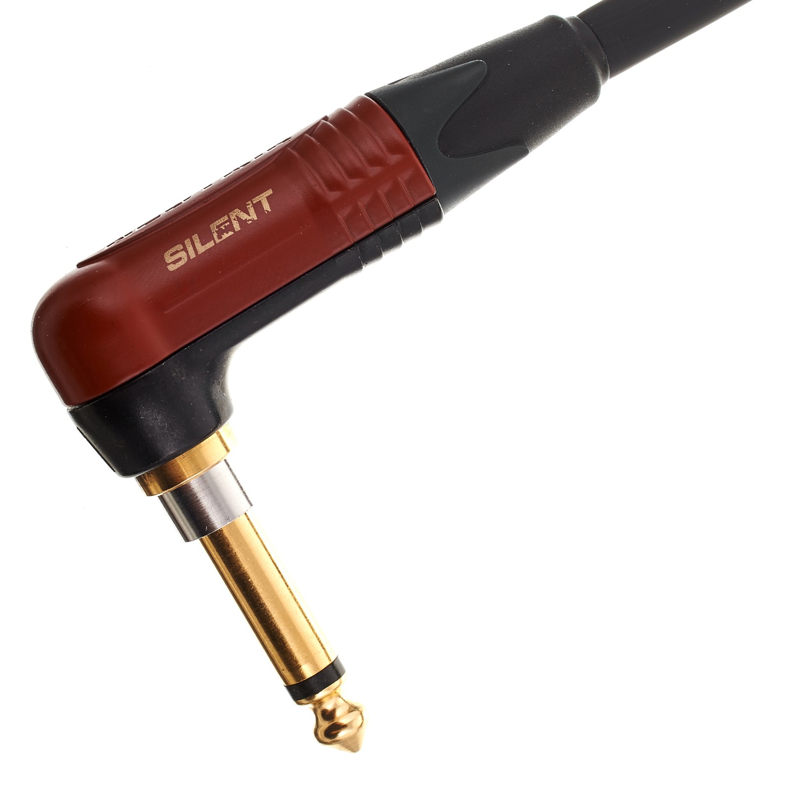 Das Instrumentenkabel CSI 6 PR-175 Silent basiert auf der hochwertigen Meterware CGK 175, die durch ihren großen Leiterquerschnitt von 0,75mm² (AWG 19) überzeugt. Der Leiterquerschnitt ergibt sich aus 42 feinen, hochreinen Kupferlitzen (Ø0,15mm) in koaxialer Aderanordnung. Die Kapazität (Leiter/Leiter) liegt bei 88pF/m, der Leiterwiderstand bei 25.5Ohm/km. Für eine störungsfreie und ungetrübte Signalübertragung wird eine doppelte Schirmung, bestehend aus einem Geflecht aus blanken Cu-Drähten auf leitendem Kunststoff, eingesetzt. Außerdem ist das CSI 6 PR-175 Silent mit einer geraden Klinke und mit einer als silentPlug ausgeführten Winkelklinke von Neutrik ausgestattet. Beide Stecker verfügen über Goldkontakte zum Schutz vor Korrosion.
