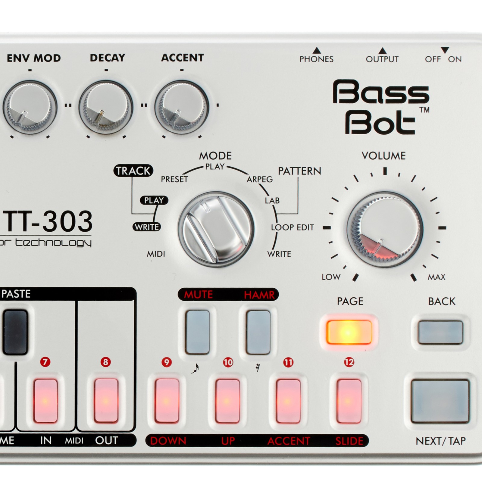 Die Stimmung des Synthesizers lässt sich mit einem eigens dafür vorgesehenen Regler einstellen. Für die Patterns kann das Tempo manuell über Tap-Tempo einprogrammiert werden. Das resonanzfähige Tiefpassfilter verfügt über Regler für Cutoff und Resonanz. Weiterhin lassen sich Envelope Modulation, Decay und Stärke der Akzente über Drehregler einstellen. Mit der Mute-Taste können die Patterntöne gekürzt und mit der HAMR-Taste verlängert werden. Mute bildet hier den Effekt einer Handflächendämpfung nach, während HAMR eine Hammer-On/Off-Mechanik nachzeichnet. Diese Tasten können auch live während des Einspielens im Loop-Edit-Mode genutzt werden. Im Detail lassen sich auch die Gate- und Slide-Zeiten einstellen. Außerdem kann das Pattern mit einem Swing/Shuffle bereichert werden. Insgesamt lassen sich so bis zu 432 selbst erstellte Patterns auf dem Gerät speichern.