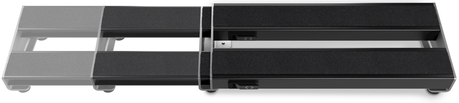 Wer Ordnung in seinem Effekt-Park schätzt und auf einen reibungslosen Ablauf seiner Performance im Proberaum oder auf der Bühne Wert legt, der kommt um die Anschaffung eines Pedalboards in aller Regel kaum herum. Das D’Addario XPND 1 sorgt für die gewünschte Ordnung und Übersicht, denn dank der patentierten Teleskop-Technologie lässt sich die Nutzfläche des Boards auf fast die doppelte Länge erweitern und somit individuell auf die Art und Anzahl der eingesetzten Effekte anpassen. Trotz des geringen Gewichts von 1,49kg zeigt sich die Aluminiumkonstruktion enorm robust und besitzt zudem ein clever gestaltetes Kabelmanagement, das zum einen Kabelwirrwarr vorbeugt und zum anderen ein schnelles und unkompliziertes Wechseln von Effekten ermöglicht.