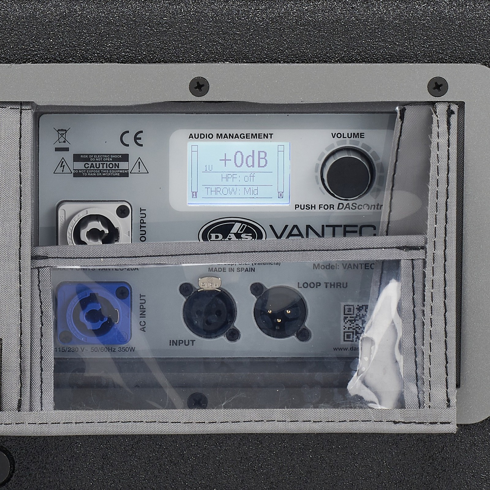Im DAS Audio Vantec-20A sorgt ein digitaler Signalprozessor mit 24-Bit-Qualität und LCD für besten Sound und eine einfache Bedienung. Dafür sorgt auch die im eigenen Hause entwickelte DAScontrol-Steuertechnik. Audio kann hier per Bluetooth in Stereo und HD-Qualität übertragen werden. Außerdem können Sound-Presets abgerufen, ein 3-Band-EQ und ein Hochpassfilter eingesetzt werden. Auch eine Verzögerung für den Delay-Stack-Betrieb und die Anpassung von Laufzeitverzögerungen lässt sich einstellen. Die Filter des Lautsprechers arbeiten als FIR-Filter und versprechen deshalb einen besonders klaren und druckvollen Klang. Als Line-Eingang steht eine XLR-Buchse mit einer Impedanz von 20kOhm bereit. Damit Buchsen und Bedienelemente witterungsgeschützt sind, ist auf der Gehäuse Rückseite eine teil-transparente Schutzplane angebracht.