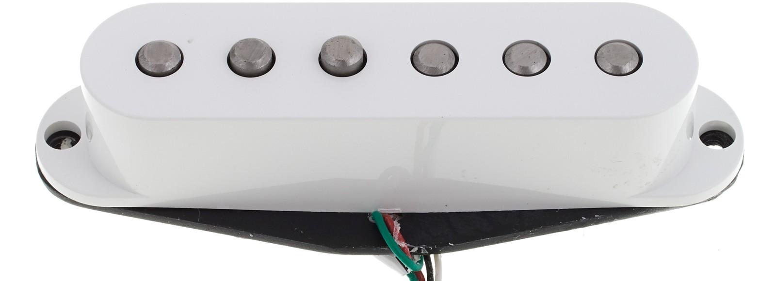 Der DiMarzio DP419 Area 67 ist ein Tonabnehmer, der für die drei klassischen Positionen der Fender Stratocaster konzipiert ist, speziell für die Hals- und die Mittelposition. Im Gegensatz zu den Originalen besteht er jedoch aus zwei Spulen, die nicht, wie bei einem herkömmlichen Humbucker, nebeneinander, sondern übereinander positioniert sind. „Stacked“ wird das genannt, gestapelt also. Das im Vergleich zum Humbucker schmale Magnetfeld legt schon mal eine gute Grundlage für einen Single-Coil-ähnlichen Sound. DiMarzio hat dieses Verfahren derart gut im Griff, dass sogar die Charakteristik bestimmter Jahrgänge modelliert werden kann. In diesem Fall stammt das Vorbild aus dem Jahre 1967, dem Jahr von Jimi Hendrix’ Auftritt in Monterey, und liefert dem brillanten, klaren Ton, der die nächsten Jahre dominieren sollte.