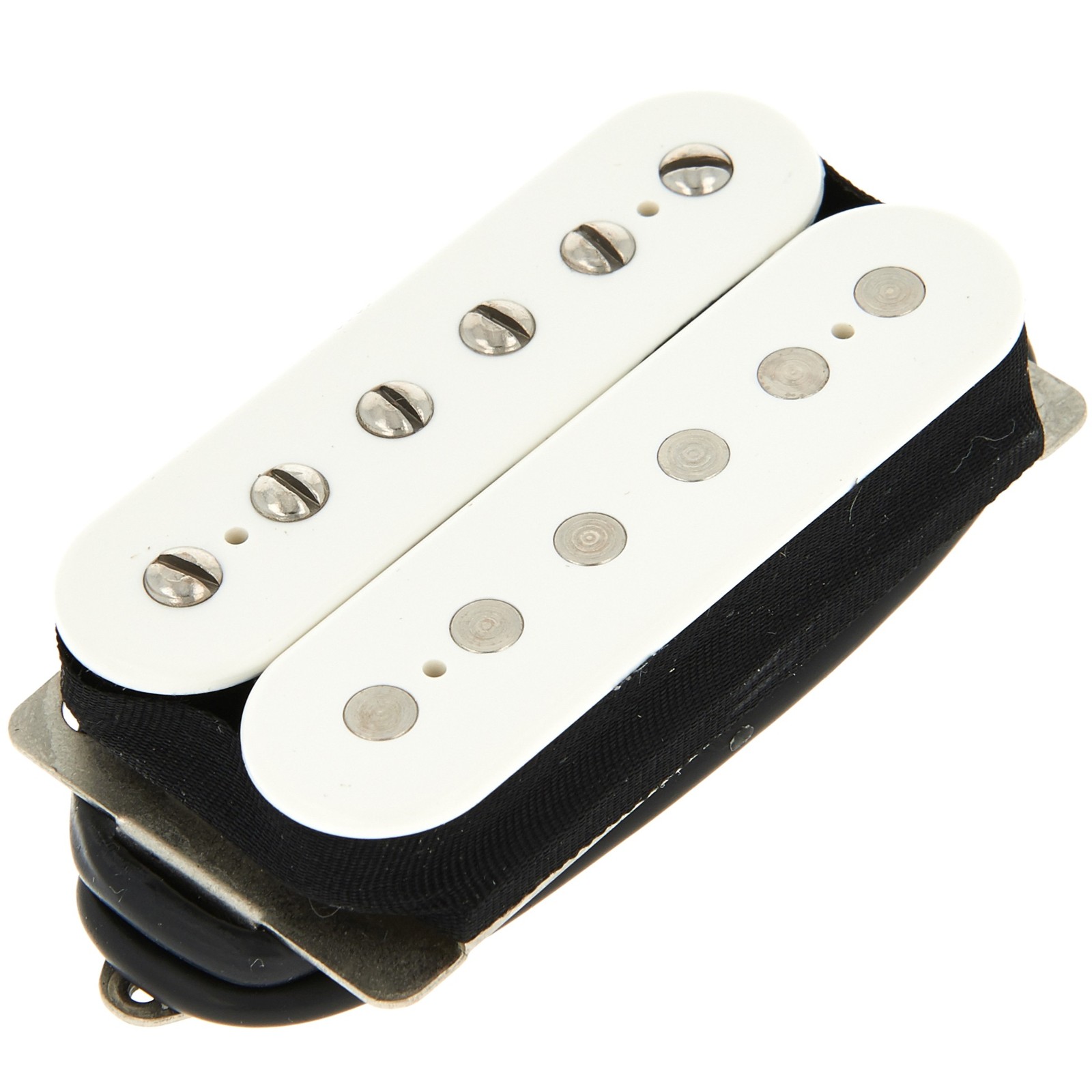 Andy Timmons gehört zu den geschätztesten Gitarren-Virtuosen im Rock-Bereich. Da ist es nicht verwunderlich, dass DiMarzio ihm im Jahre 2001 seinen eigenen Signature-Humbucker spendierte, den sogenannten „AT-1 F“ mit der Produktnummer DP224. Es handelt sich um einen passiven Steg-Humbucker, der auf Basis von AlNiCo-5-Magneten arbeitet - und hier im F-Spacing, also minimal weiter auseinander liegenden Pole-Pieces, für die Verwendung mit Tremolo-Gitarren vorliegt. Die Spulen wurden speziell nach den Vorgaben von Timmons gewickelt. Das Ergebnis ist ein Klang, der an das Vintage-Voicing eines PAF-Style-Humbuckers erinnert. Allerdings ist der AT-1 um einiges heißer im Output. Durch diese Kombination ist der Humbucker äußerst flexibel im Rock-Bereich einsetzbar. Kräftige Rhythmus-Sounds sowie warme und singende Leads sind also kein Problem. Dank der vier Anschlusskabel können dabei einige Klangoptionen realisiert werden.
