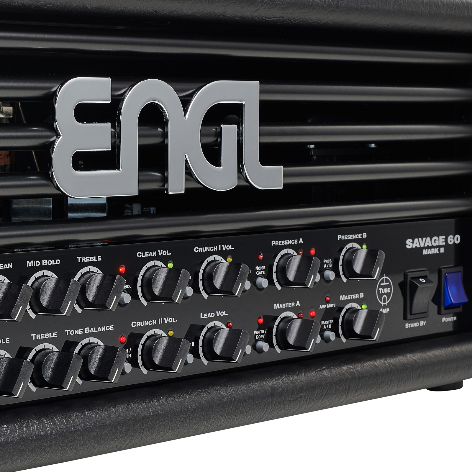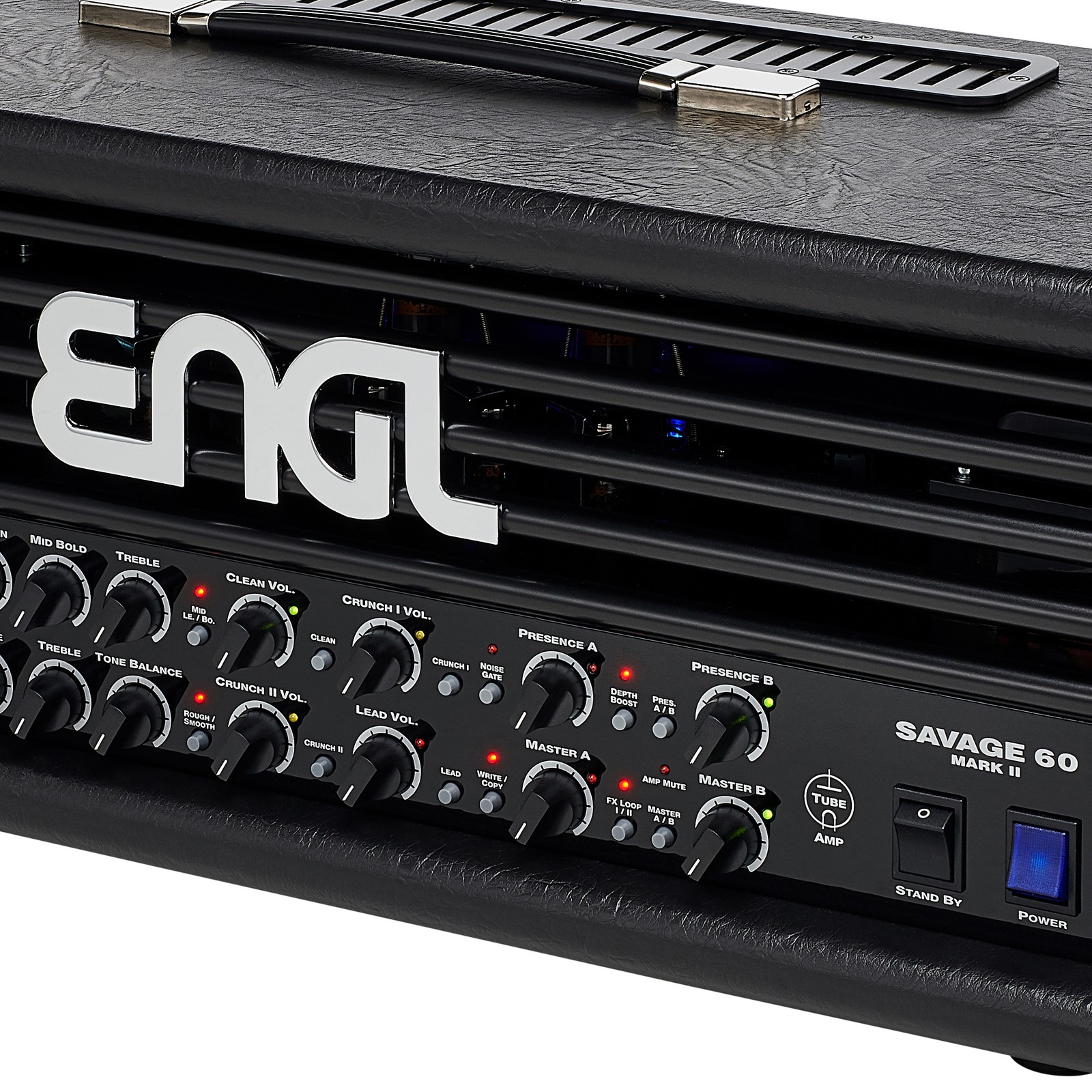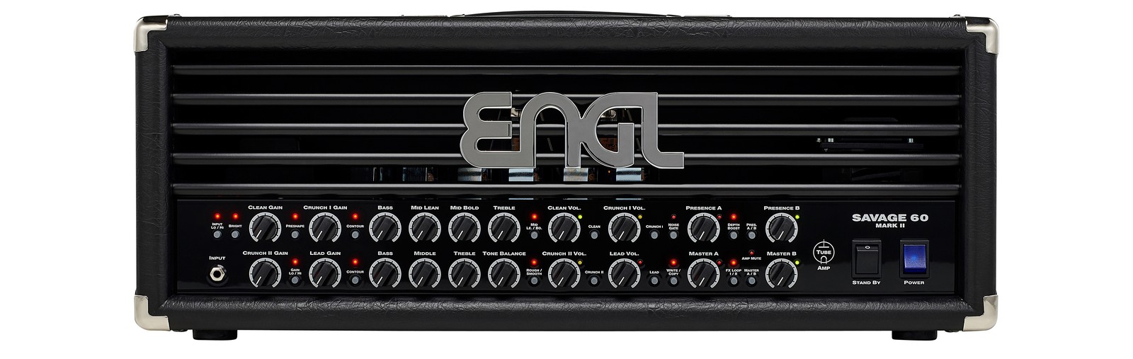 Der Engl Savage (zu Deutsch etwa “Barbar”) 60 MKII ist eine Neuauflage des Engl-Klassikers Savage, der in seiner Ursprungsform erstmals 1993 auf den Markt gebracht wurde. Das grundlegende Layout des Savage hat Engl beibehalten. Zwei Hauptkanäle (Clean und Crunch II) mit vollwertigem 4-Band-EQ und jeweils zwei Gainabstufungen (Crunch I und Lead) sorgen dafür, dass dem Spieler mit effektiv 4 Kanälen mehr als genug Sounds zu Füßen liegen. Auch innerlich liegt der MKII nah am Vorgänger: 6 ECC83- und 2 EL34-Röhren sorgen nach wie vor für einen Sound, der auch im Profi-Segment seinesgleichen sucht. Gleichzeitig hat Engl dem Savage ein Makeover verpasst, das ihn zu einem absolut modernen Begleiter für alle Situationen macht.