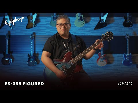 Seit ihrer Präsentation im Jahre 1958 setzt die Gibson ES-335 den Maßstab für halbakustische E-Gitarren. Sie zählt darüber hinaus zu den erfolgreichsten Instrumenten, die Gibson je gefertigt hat und bis heute fertigt. Die Epiphone ES-335 Figured Blueberry Burst aus der “Inspired by Gibson”-Serie ist ein wenig teurer als die regulären ES-335-Modelle, was daran liegt, dass dieses Modell mit dem feinen Riegelahorn auf der Vorder- und Rückseite sowie den Zargen und mit den größeren Block-Inlays statt einfacher Dots ein ordentliches Design-Upgrade erhalten hat. Davon abgesehen gibt es aus technischer Sicht keinen praktischen Unterschied. Und detailgetreu ist die Epiphone ES-335 Figured Blueberry Burst bis auf die moderne Lackierung in der Tat, das fängt mit dem Riegelahornkorpus an, geht weiter über die beiden Humbucker und deren Regler und Schalter bis hin zur Hardware, die mit ihrem Nickel-Finish den Look ergänzt. Übernommen hat das Epiphone-Modell selbstverständlich auch das Rounded-C-Halsprofil.
