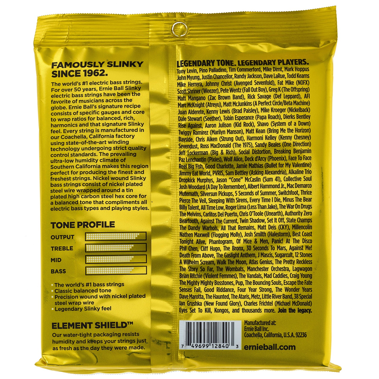 Der US-amerikanische Musiker und Gitarrenlehrer Ernie Ball revolutionierte in den frühen 60er Jahren den Markt für Gitarren- und Basssaiten. Ihn selbst gibt es leider nicht mehr, aber die von seinem Sohn geführte und nach Ernie Ball benannte Company zählt heute zu den führenden Herstellern für Basssaiten. Bei den Ernie Ball Beefy Slinkys in der Stärke 0.65 bis 130 handelt es sich um Nickel Plated Steel Roundwound Saiten für Bässe mit „normaler“ Long Scale Mensur. Dies entspricht dem üblichen Standard von 34 Zoll bzw. 86,4cm. Die Kennzeichen aller Ernie Ball Slinky Saiten sind ein über den gesamten Frequenzbereich ausgewogener Sound sowie eine überdurchschnittliche Langlebigkeit. Nach wie vor ist die Firma Ernie Ball ein Familienunternehmen, welches alle Saiten in den USA herstellt.