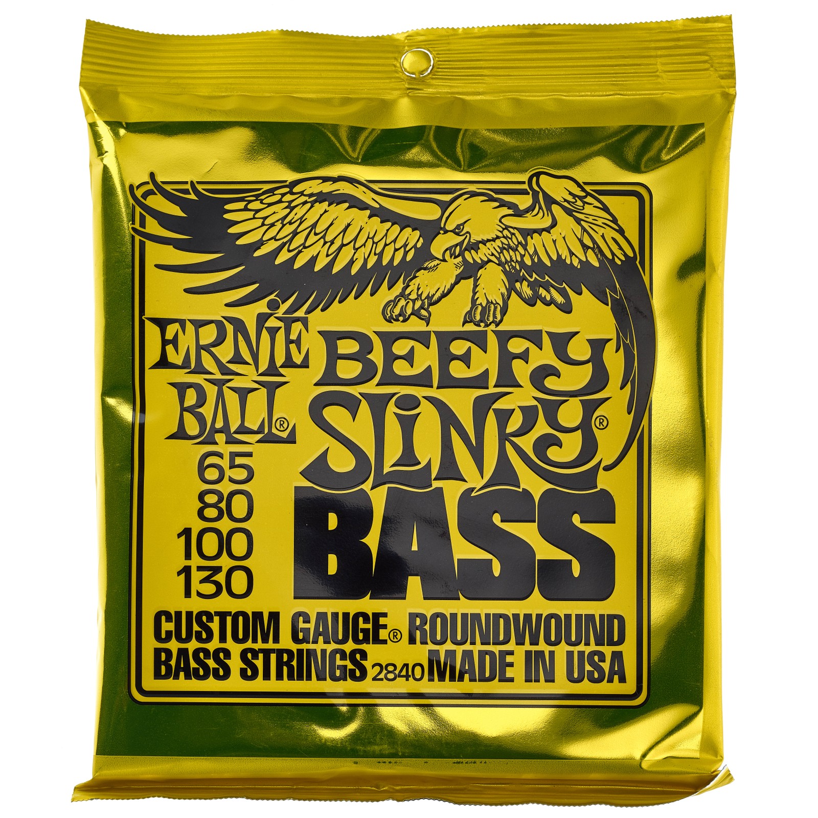 Die Ernie Ball Beefy Slinkys bestehen aus einem inneren Draht (Seele), der mit einem Runddraht aus Nickel Plated Steel (mit Nickel legierter Stahl ) umwickelt wird (Roundwound). Im Gegensatz zu reinem Stahl verfügt die Nickellegierung über eine relativ geschmeidige Oberfläche und eine angenehme Haptik. Typische klangliche Charakterzüge von Nickel-Plated-Steel-Saiten sind ausgeprägte Mitten, straffe Bässe und nicht zu aufdringliche Höhen. Alle Ernie Ball Slinkys werden in einer luftdichten Verpackung geliefert, die sicherstellt, dass alle Saiten auch nach längerer Lagerung noch in einwandfreien Zustand sind.