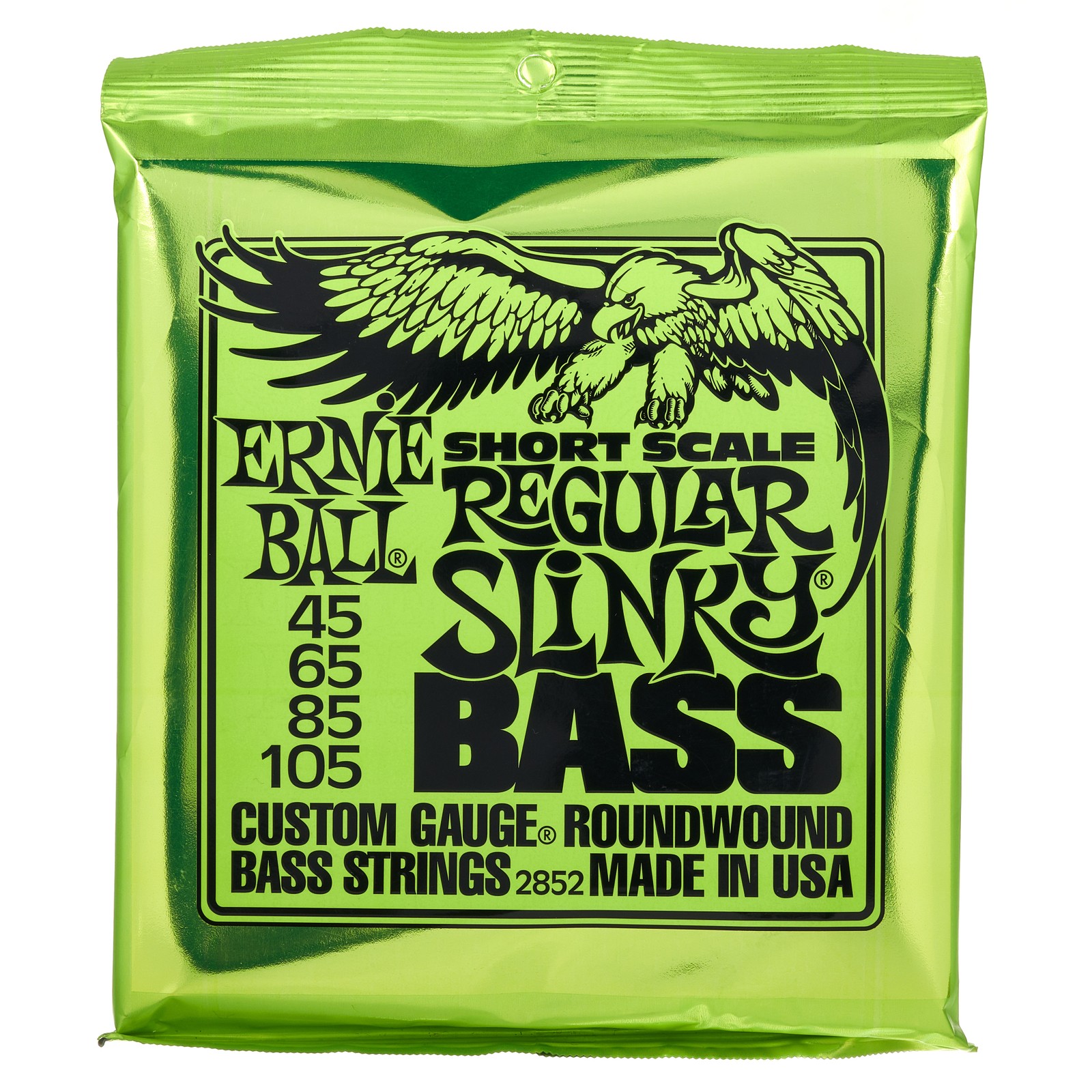 Der US-amerikanische Musiker und Gitarrenlehrer Ernie Ball revolutionierte in den frühen 60er Jahren den Markt für Gitarren- und Basssaiten. Ihn selbst gibt es leider nicht mehr, aber die von seinem Sohn geführte und nach Ernie Ball benannte Company zählt heute zu den führenden Herstellern für Basssaiten. Bei den Ernie Ball Regular Slinky Short in der Stärke 0.45 bis 105 handelt es sich um Nickel Plated Steel Roundwound Saiten für Bässe mit Mensuren, die mit 32 Zoll oder weniger kürzer als der übliche Standard von 34 Zoll sind. Die Kennzeichen aller Ernie Ball Slinky Saiten sind ein über den gesamten Frequenzbereich ausgewogener Sound sowie eine überdurchschnittliche Langlebigkeit. Nach wie vor ist die Firma Ernie Ball ein Familienunternehmen, welches alle Saiten in den USA herstellt.