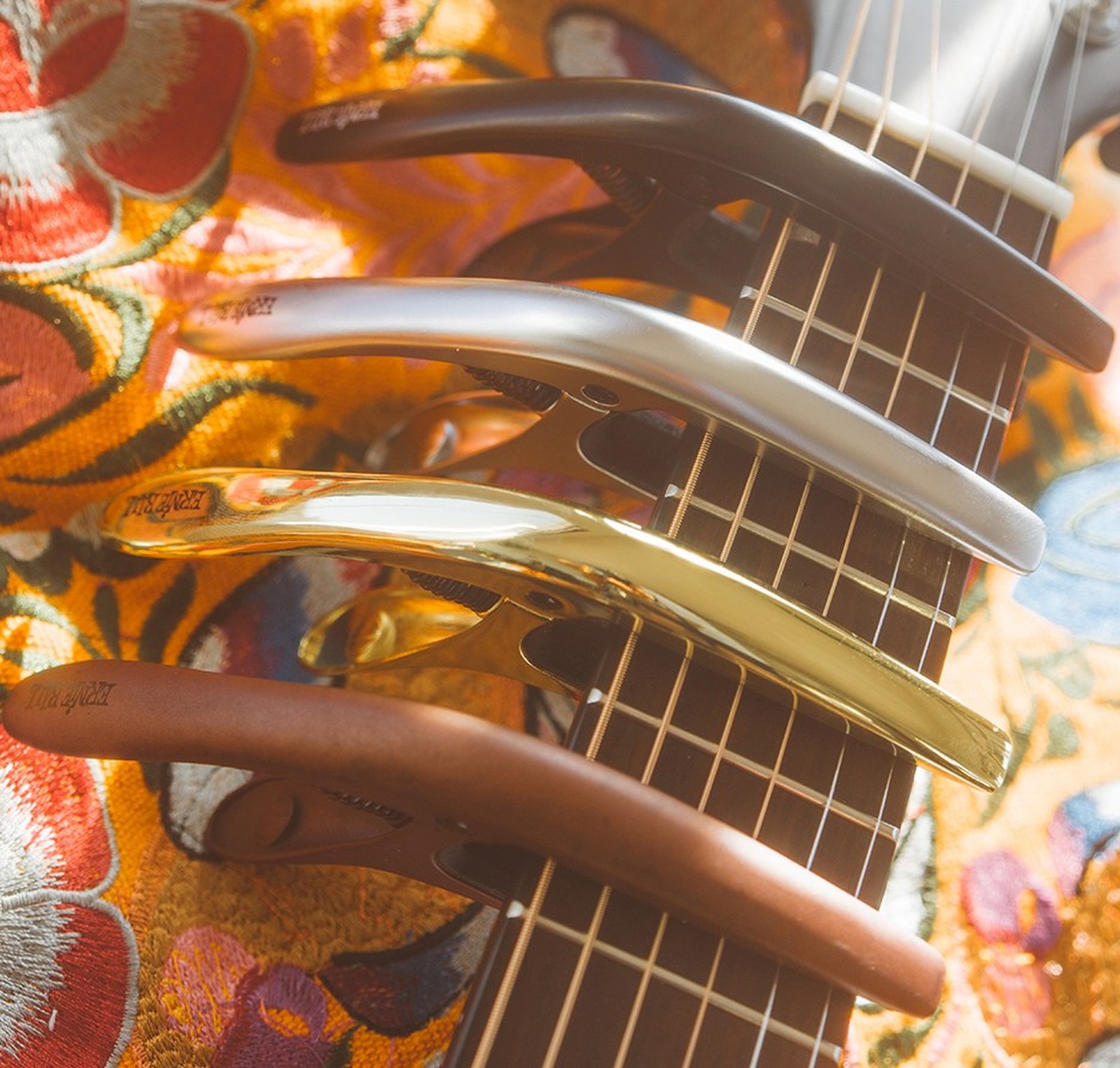 Insbesondere im Einsatz auf der Bühne erweist sich der den Axis Capo durch seine ergonomische Form und das leichte Gewicht als sehr praktisch beim schnellen Wechseln seiner Positionen auf dem Hals bzw. dem Griffbrett. Nach dem Aufsetzen sind nachträgliche Korrekturen nicht nötig, die präzise gefertigten Gummipads gewährleisten zusammen mit genügend Anpressdruck ein sicheres Arretieren der Saiten in der gewünschten Position. Dabei spielt es keine Rolle, wie stark das Griffbrett der Gitarre gewölbt ist – von ultraflachen, modernen Profilen bis hin zu den kräftigeren Klassikern im Vintage-Style reicht das Einsatzspektrum des Axis Capo, der neben schwarz noch in vielen weiteren Farben erhältlich ist.
