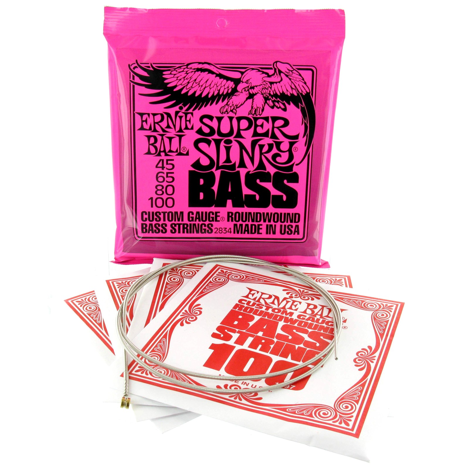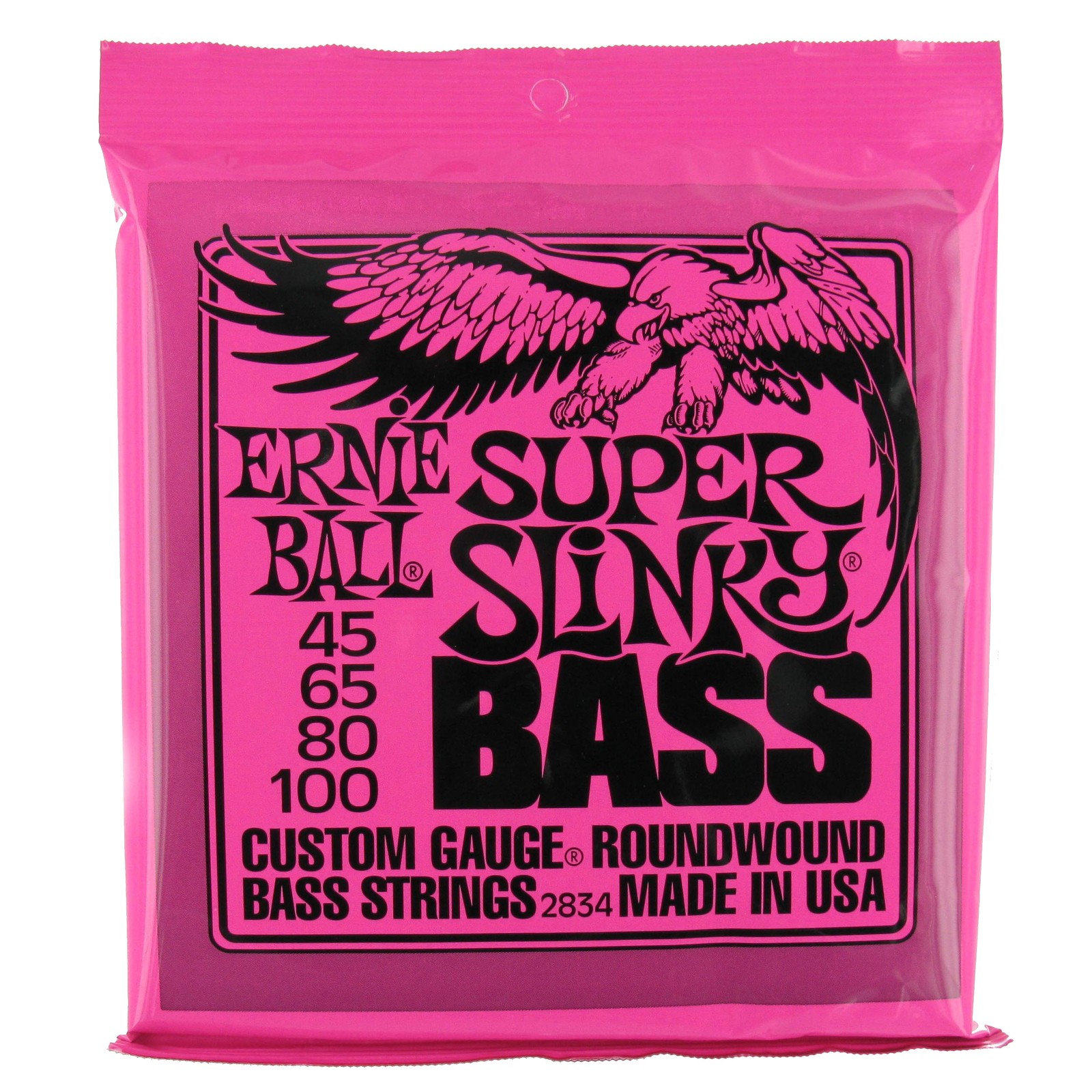 Ernie Ball Slinky Saiten sind vor allem für diejenigen interessant, die bei der Wahl ihrer Basssaiten besonderen Wert auf Qualität, Sound und Langlebigkeit legen. Schließlich interagiert man über die Saiten mit dem Instrument und bekommt die gewünschte Rückmeldung. Kompromisse sollte man bestenfalls keine eingehen und die Ernie Ball Slinkys sind alles andere als das. Die Super Slinkys mit den Stärken 0.45 bis 100 bilden sozusagen den Standard unter den Ernie Ball Saiten. Sie dienen als Allrounder für alle Stilrichtungen und Spieltechniken. Die E-Saite ist dick genug, um ordentlich Low End zu liefern, während die höheren Saiten auch schnellere Slap- und Tap-Gewitter erlauben, ohne dabei zu viel Widerstand zu leisten.