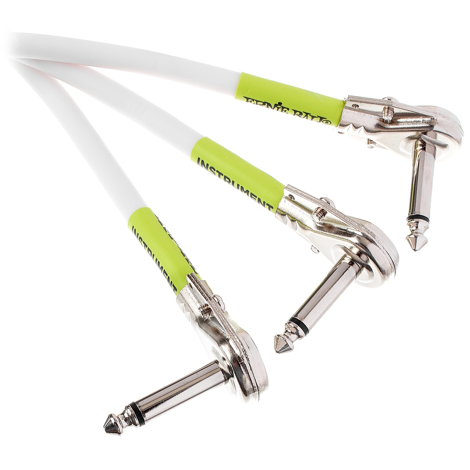 Der doppeladrige Leiteraufbau der Ernie Ball Kabel sorgt für eine hochgradig lineare Klangübertragung. Die mehrfache Abschirmung des Innenlebens verhindert dabei unerwünschte Einstreuungen in das Signal. Gerade in Zeiten von WLAN und Bluetooth kommt diesem Thema besondere Bedeutung zu. Die hochwertigen Stecker bieten viel Kontaktfläche für optimale Leitfähigkeit. Zudem sitzen sie fest in der Buchse und geben so auch mechanisch einen guten Halt. Der Mantel aus PVC ist sehr robust und garantiert eine lange Lebensdauer, auch wenn man die Ernie Ball Kabel öfter mal „mit Füßen tritt“. Die Ernie Ball Patchkabel kommen im praktischen 3er Pack. Sie sind in den Farben Schwarz oder Weiß und den Längen 15cm, 30cm und 46cm erhältlich. Bei der längsten Variante hat man zudem die Wahl zwischen zwei Winkel- oder einem Winkel- und einem geraden Stecker.