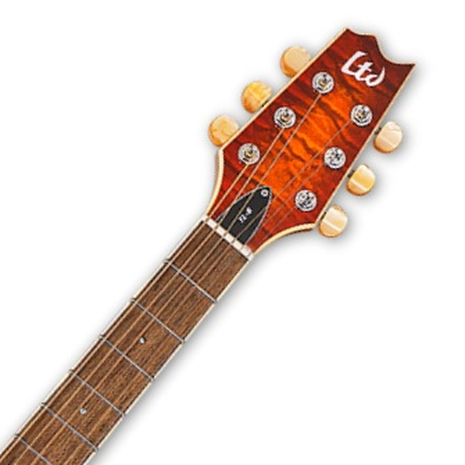 Die ESP LTD TL-6 QM TEB ist eine Westerngitarre, die durch einen besonders schmalen, im Tiger-Eye-Burst lackierten Thinline-Body besticht, der zur besseren Bespielbarkeit der hohen Halslagen mit einem Cutaway versehen ist. So lassen sich alle 22 Jumbo-Bünde dieser Gitarre mühelos erreichen. Das Griffbrett besteht aus Roasted Jatoba, das ähnliche Eigenschaften wie das ehemals im Instrumentenbau weit verbreitet genutzte Palisander hat. Die verbauten Mechaniken sind vom renommierten Hersteller Grover. Stegeinlage und Sattel sind aus Graphtech Nubone XB hochverdichtet und sorgen für sowohl bass- als auch detailreichen Klang. Als Extra bietet diese Gitarre einen Fishman Sonicore Piezo-Tonabnehmer, dessen aufgegriffenes Signal von einem Fishman TL3-Preamp verstärkt wird.