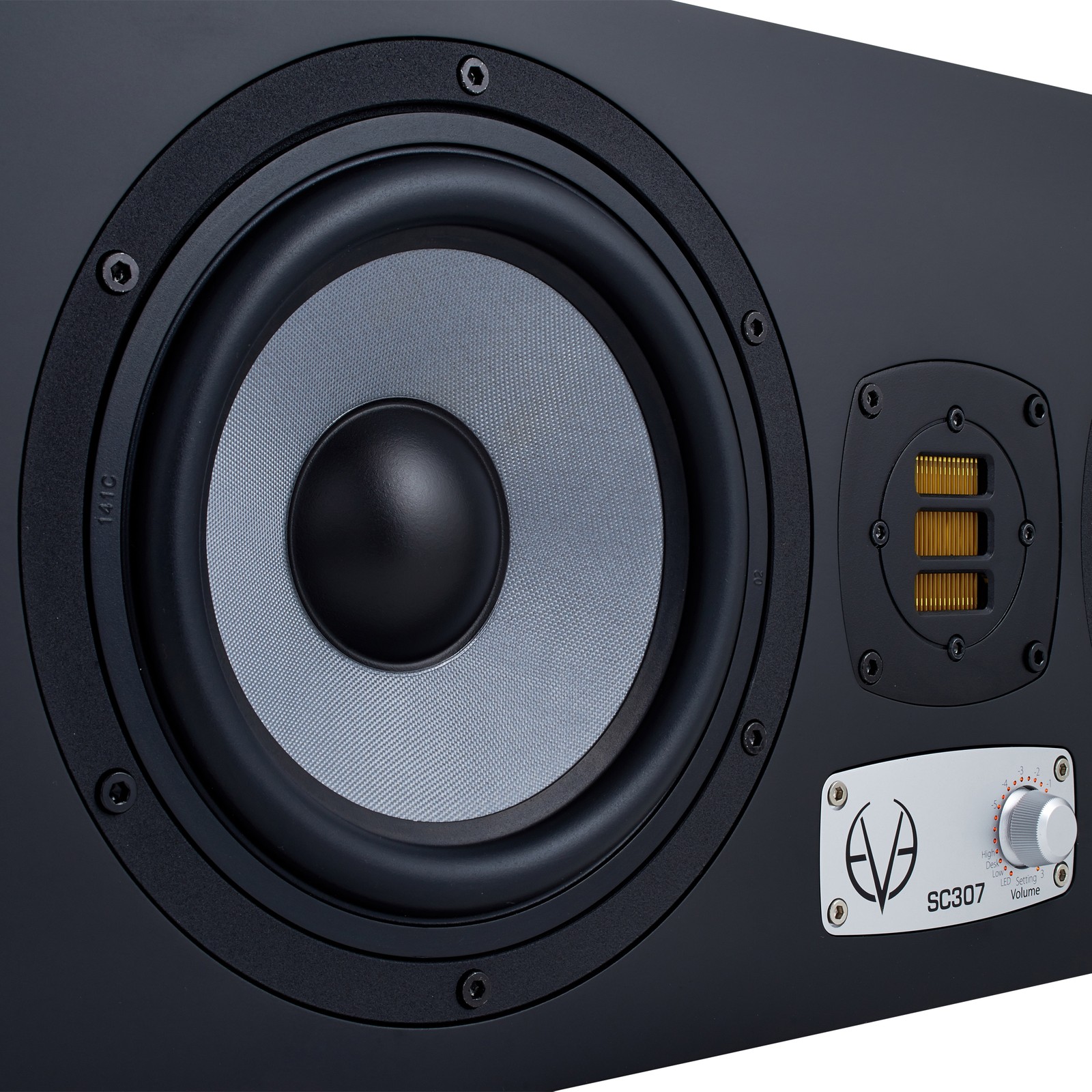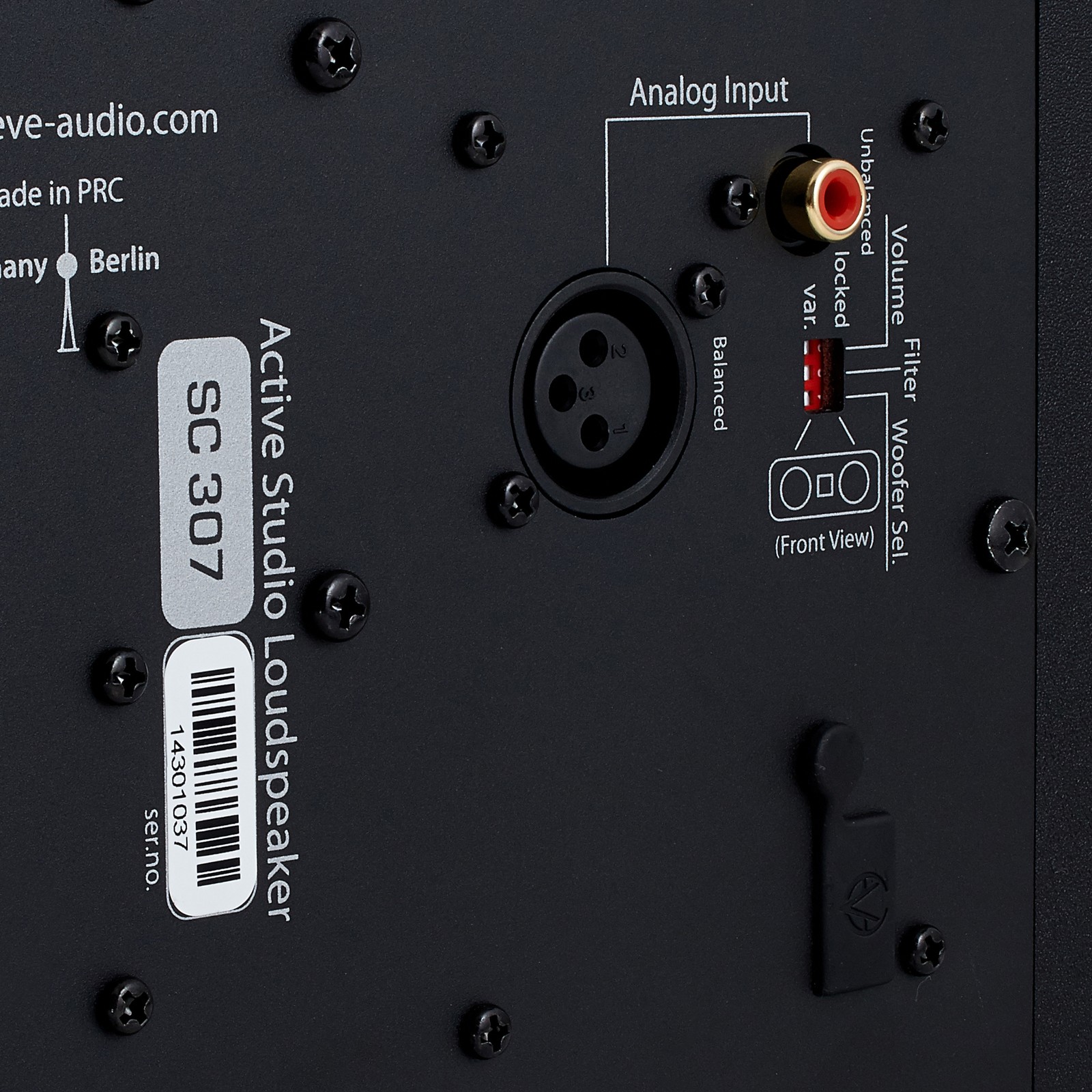 Der SC307 ist ein aktiver Studiomonitor, der über ein 3-Wege-System funktioniert. Wie auch der kleine Bruder SC305 verfügt er über einzigartige Funktionen, die für eine perfekte Frequenzbalance und eine störungsfreie Wiedergabe sorgen. Die Bassreflexrohre auf der Rückseite verhindern Strömungsgeräusche und Resonanzen. Der integrierte Signalprozessor sorgt für eine individuelle Frequenzanpassung an den Raum. Diese Einstellungen können über den Drehregler vorgenommen werden, welcher sich praxisnah an der Vorderseite befindet. Auf der Rückseite befinden sich ein XLR-Anschluss sowie ein Cinch-Eingang. Die Ausstattung der SC307 ermöglicht so eine flexible Anwendung in den unterschiedlichsten Räumen und Abhörsituationen in professionellen Tonstudios.