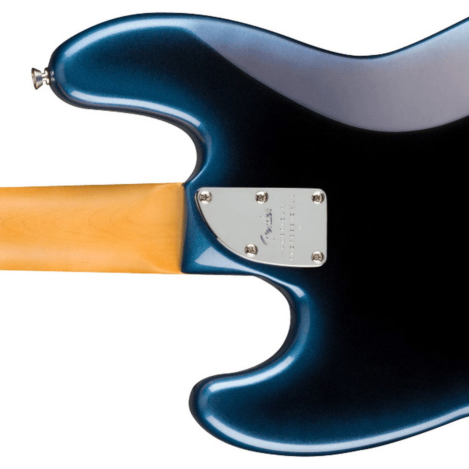 Der American Pro II Jazz Bass FL ist ein flexibles Arbeitstier: eine Augenweide wie eh und je, nun jedoch noch eine Spur komfortabler zu spielen und mit Tonabnehmern ausgestattet, die das hinzugewonnene Potential auch klanglich ausschöpfen können. Mit der HIMASS Vintage Bridge hat Fender letztendlich auf einen der meistgeäußerten Kritikpunkte reagiert und dem Jazz Bass endlich eine massive Bridge mit String-Thru-Body-Option spendiert. Optisch bietet der Bass mit dem Dark-Night-Finish ein modernes Auftreten eines Bursts von Schwarz zu Blau. „The Sky is the Limit“ – dazwischen ist man durch das bundlose Griffbrett sehr frei – wie immer man es sehen mag, der Fender Jazz Bass aus der neuen American-Pro-Serie liefert von Steg bis Kopfplatte volle (Longscale-)Länge Spielvergnügen.
