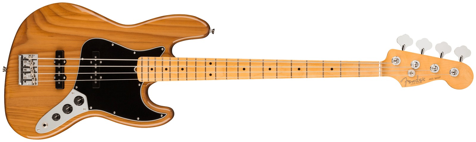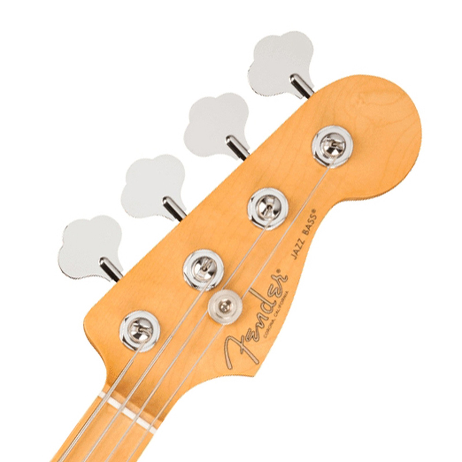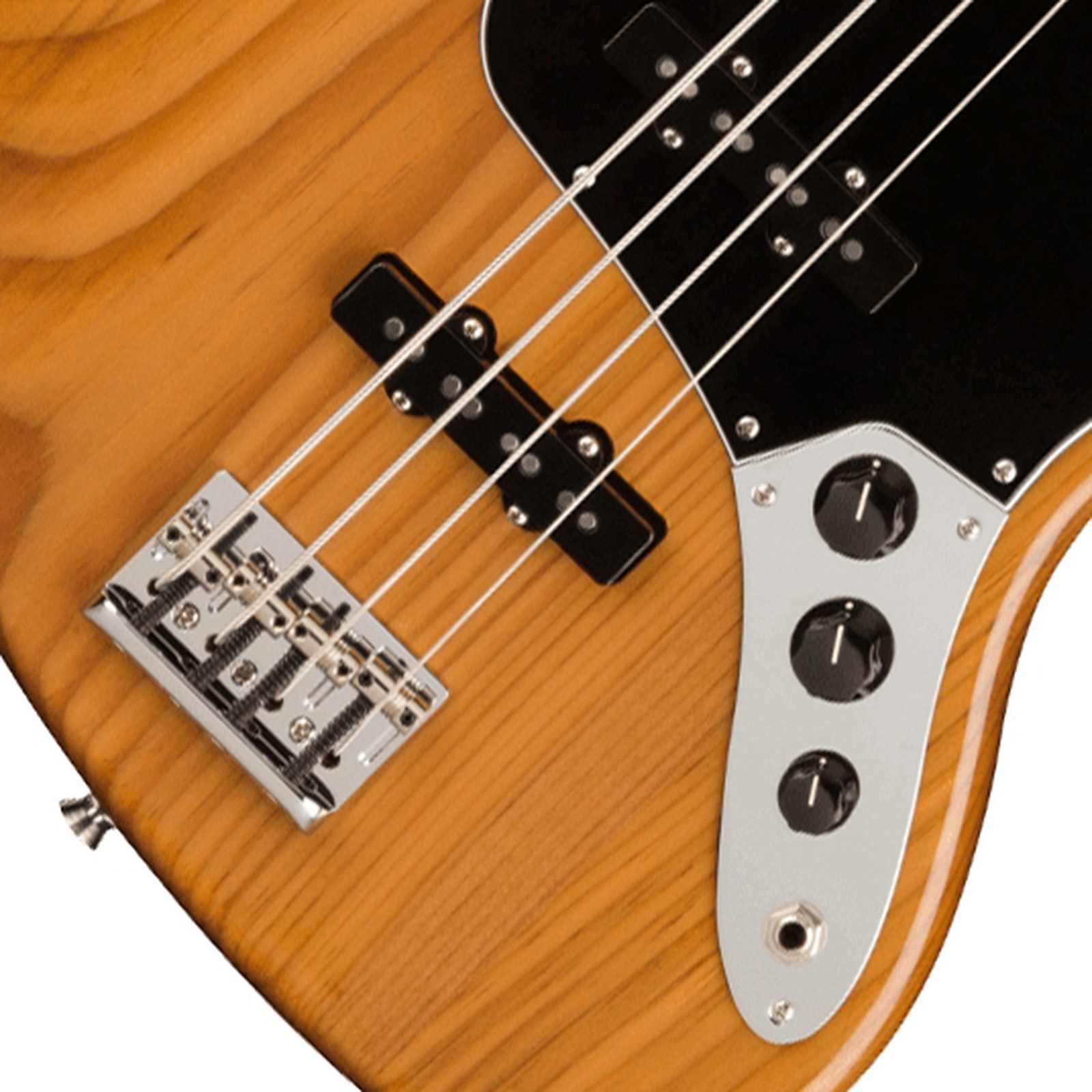 Mit der neuen Produktserie "American Professional II" ersetzt die Firma Fender die bisherige "American Professional"-Serie und führt eine Reihe von Modifikationen ein. Beim "American Pro II Jazz Bass" sticht zu allererst sein Korpus aus geröstetem und gehärteten Pinienholz ins Auge. Fender reagiert hiermit auf die schädlingsbedingte Verknappung von Esche, deren Verwendung nahezu komplett eingestellt werden musste. Pinienholz besitzt außerordentlich gute Klangeigenschaften und eine optisch attraktive Maserung, sodass es Esche in nichts nachsteht. Weitere Neuerungen und vor allem Verbesserungen an den American-Pro-II-Modellen sind neue V-Mod-II-Tonabnehmer, ein graphitverstärkter Ahornhals mit schlankem C-Profil und per Hand gerundeten Griffbrettkanten, eine solide Hi-Mass-Vintage-Bridge und schließlich eine neue 5-fach-Hals-/Korpusverschraubung mit abgeflachtem Halsfuß für eine bessere Bespielbarkeit der hohen Bünde.