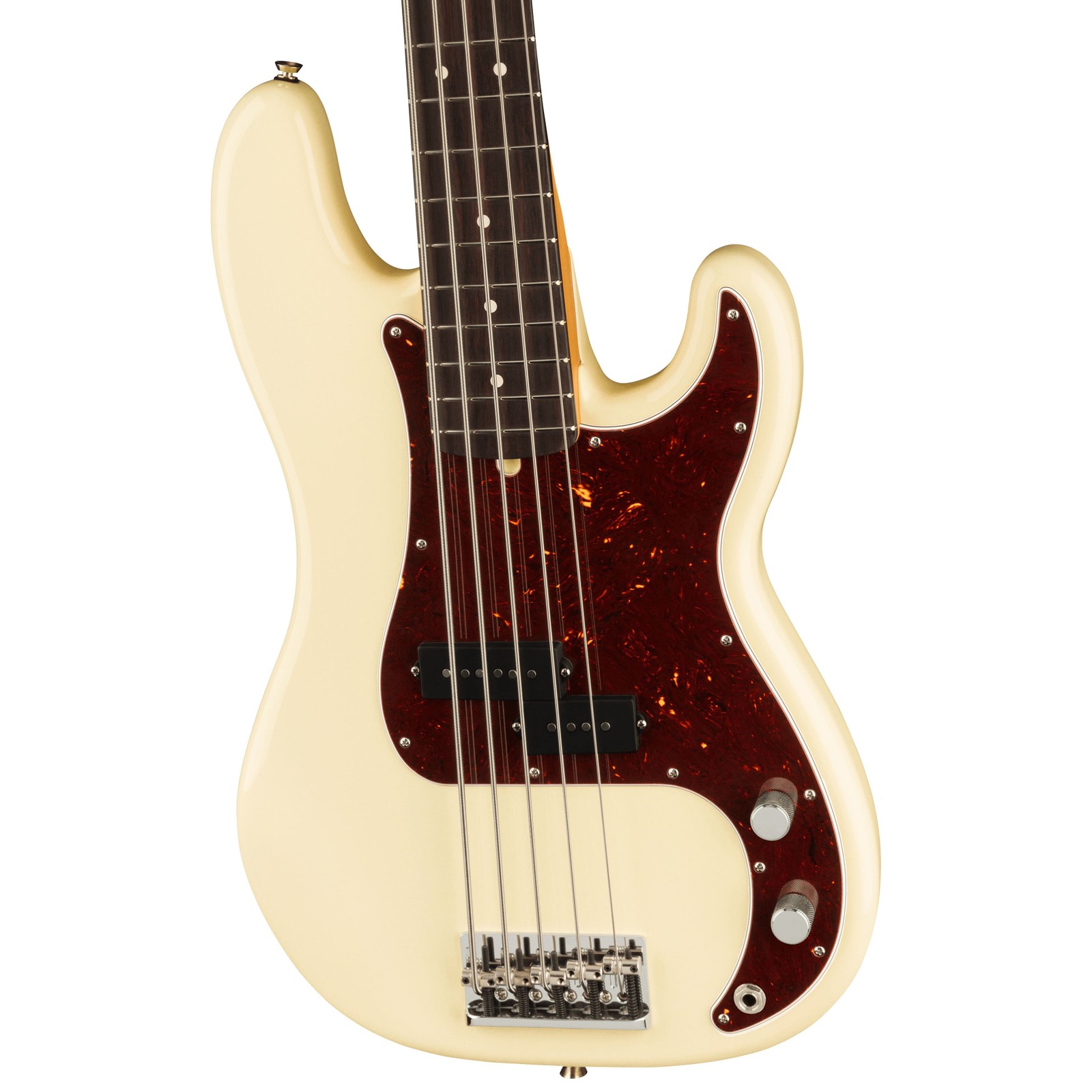 Die bewährte Basis aus einem Erlekorpus, einem Ahornhals und einem Palisandergriffbrett blieb beim American Professional II erhalten, ebenso wie die 20 Bünde. Der neue Posiflex-Graphitstab stabilisiert den Hals zusätzlich und macht ihn unempfindlicher gegenüber thermischen Veränderungen. Mit dem matten Satin Finish des Halses, den abgerundeten Griffbrettkanten und dem abflachten Halsfuß erhält man eine optimale Bespielbarkeit bis in die höchsten Lagen. Klanglich das wichtigste Update ist sicherlich der V-Mod II Split Coil Pickup, der für mehr Druck, Präzision, Dynamik und Ausgewogenheit zwischen den Saiten sorgt. Geblieben ist natürlich die passive Elektronik mit einem Volume- und einem Tone-Regler. Auch bei der Hardware gibt es Neuerungen, vor allem den konischen Schaft der Stimmmechaniken, der beim Saitenwechsel hilfreich ist und für mehr Schwingungsübertragung auf den Hals sorgt. Das Olympic White Finish ist eine klassische Fender-Farbe und passt daher perfekt zu einem Precision Bass.