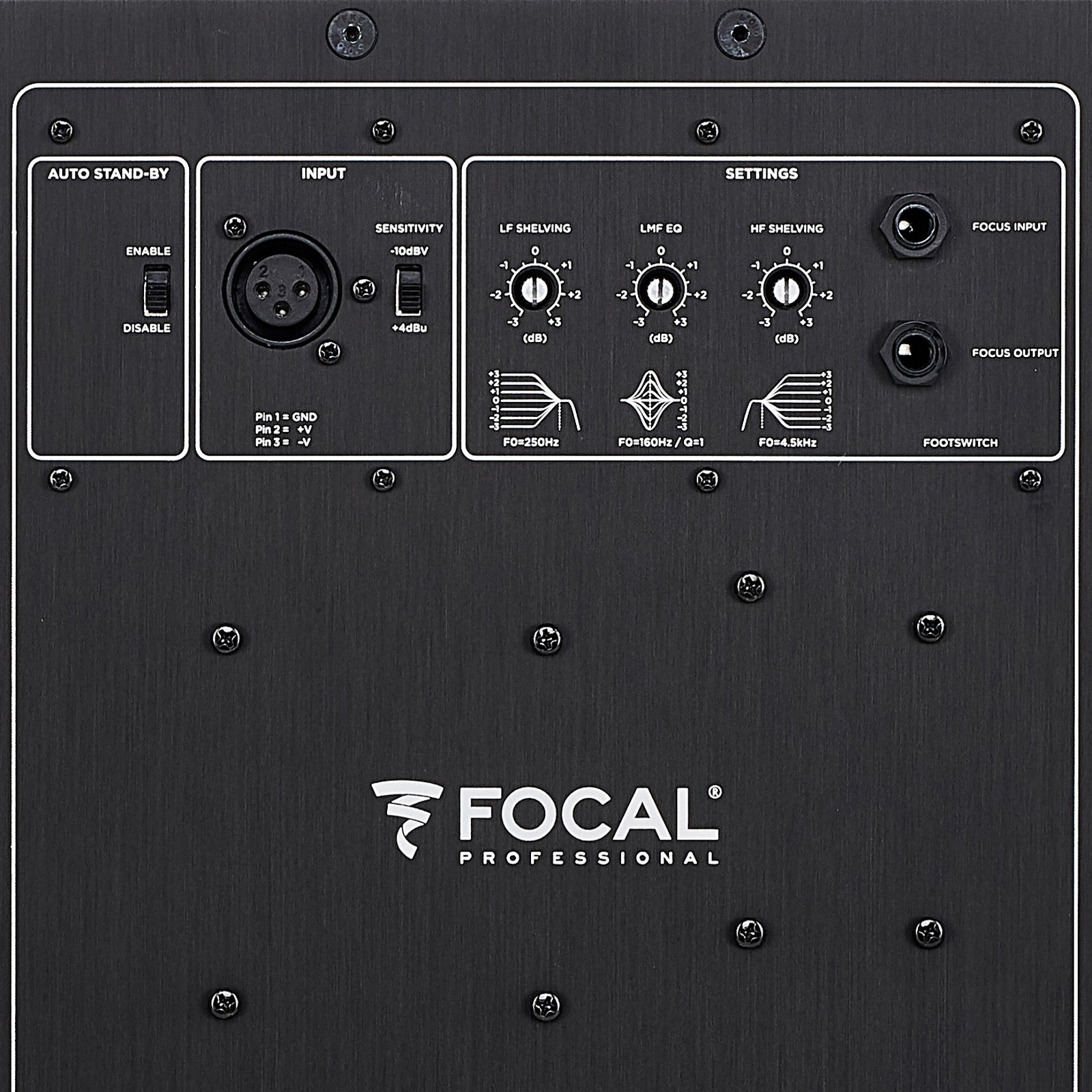 Bereits die Möglichkeit, den Focal Trio11 Be sowohl vertikal als auch horizontal aufstellen zu können, sorgt in Kombination mit den Gegebenheiten des jeweiligen Abhörraums für ein außergewöhnliches Maß an Flexibilität. Zur entsprechenden Ausrichtung von Mittel- und Höchtöner sind die beiden Treiber in einem gemeinsamen, drehbaren Element untergebracht. Zum Ausgleichen von Überbetonungen im Frequenzspektrum, die sich durch Reflexionen im Raum oder an Arbeitsflächen ergeben, sind weitere klangliche Optimierungen über einen internen Dreiband-EQ möglich. Dieser bietet ein Low-Shelf-Filter bei 35Hz-250Hz, ein High-Shelf-Filter bei 4,5kHz-40kHz sowie ein Low-Mid-Filter bei 160Hz, wobei der Regelbereich für alle drei Bänder bei +/- 3dB liegt.