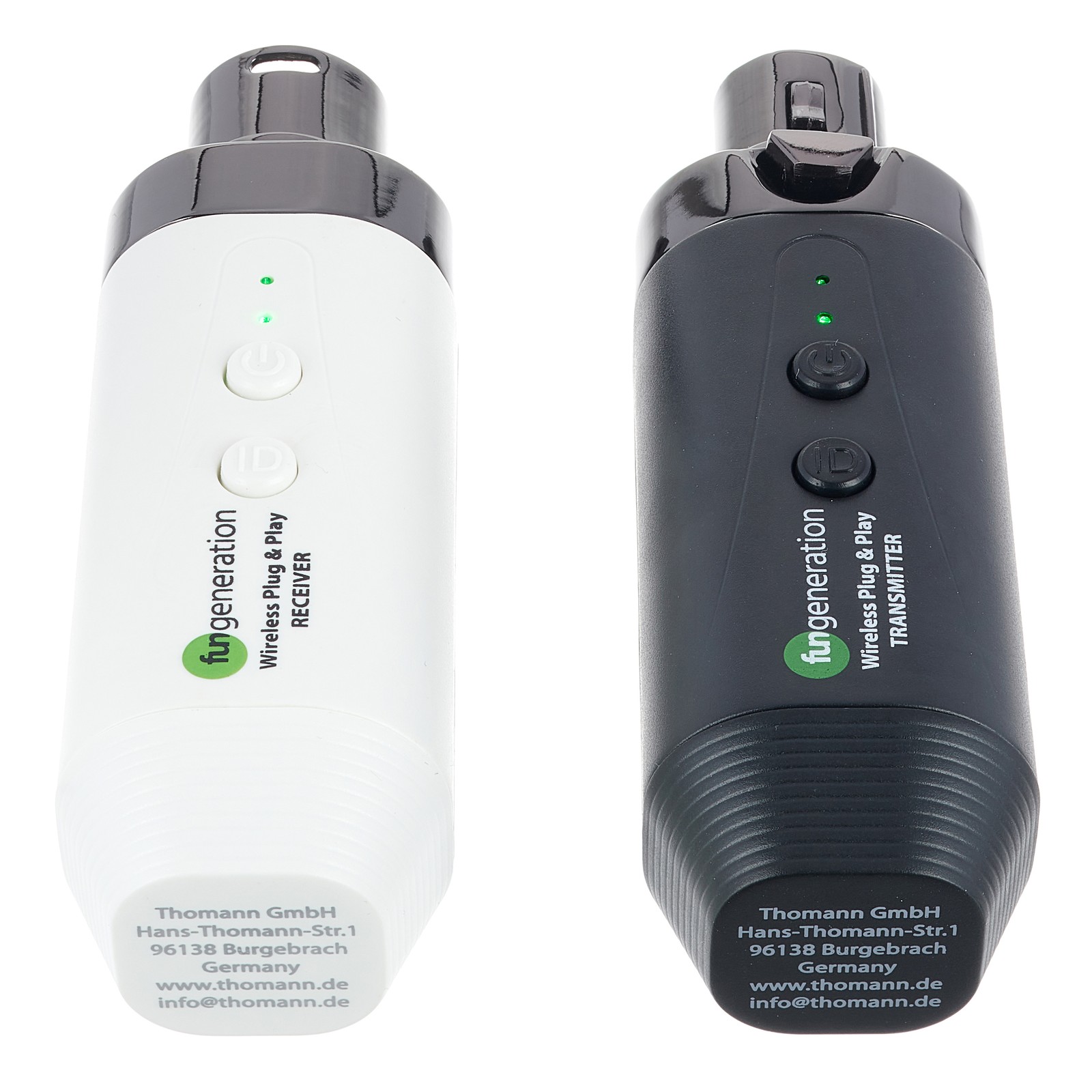 Mit dem Fun Generation Wireless Plug & Play reisen Sänger zu ihren Auftritten mit äußerst kleinem Gepäck, denn sie haben eine eigene Funkstrecke stets in der Hosentasche und ihr Instrument, ihre Stimme, ja ohnehin dabei. Ist dann auf Tour in einer Location kein kabelloses Handmikrofon vorhanden, steckt man den Aufstecksender an ein in fast jedem Club verfügbares Gesangsmikro mit XLR-Buchse und den Empfänger ins Mischpult, wobei die Zeit zwischen Soundcheck und Gig zum Laden genutzt werden kann. Das Wireless Plug & Play ist kleiner und leichter als ein Kabel und spart dazu den Kabelsalat. Und angesichts des niedrigen Preises und der gewonnenen Bewegungsfreiheit lohnt sich die Anschaffung des Funksets bereits ab dem ersten Gig.