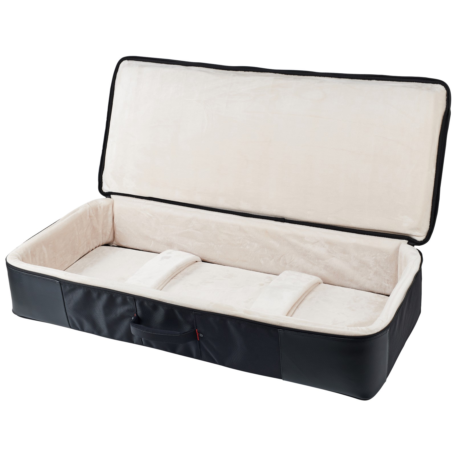 Die Pro Go 61 ist für jedes handelsübliche 61-Tasten-Keyboard ausgelegt, darunter das Korg PA-600, Roland BK-3 und Yamaha A-3000. Die Innenmaße betragen 1080 mm x 445 mm x 178 mm. Während das ballistische Nylon nicht nur besonders reißfest, sondern gleichzeitig auch wasserabweisend ist, bieten eine 25 mm starke Innenpolsterung und ein Micro-Fleece-Innenfutter im Falle eines Sturzes eine extra weiche Landung. Auch die Sicherheitslaschen zum Fixieren des Instruments sind mit Micro-Fleece gefüttert, weshalb keinerlei Kratzer am Instrument zu befürchten sind. Außen ist zudem eine geräumige Zubehörtasche angebracht, in der alles Nötige seinen Platz findet.