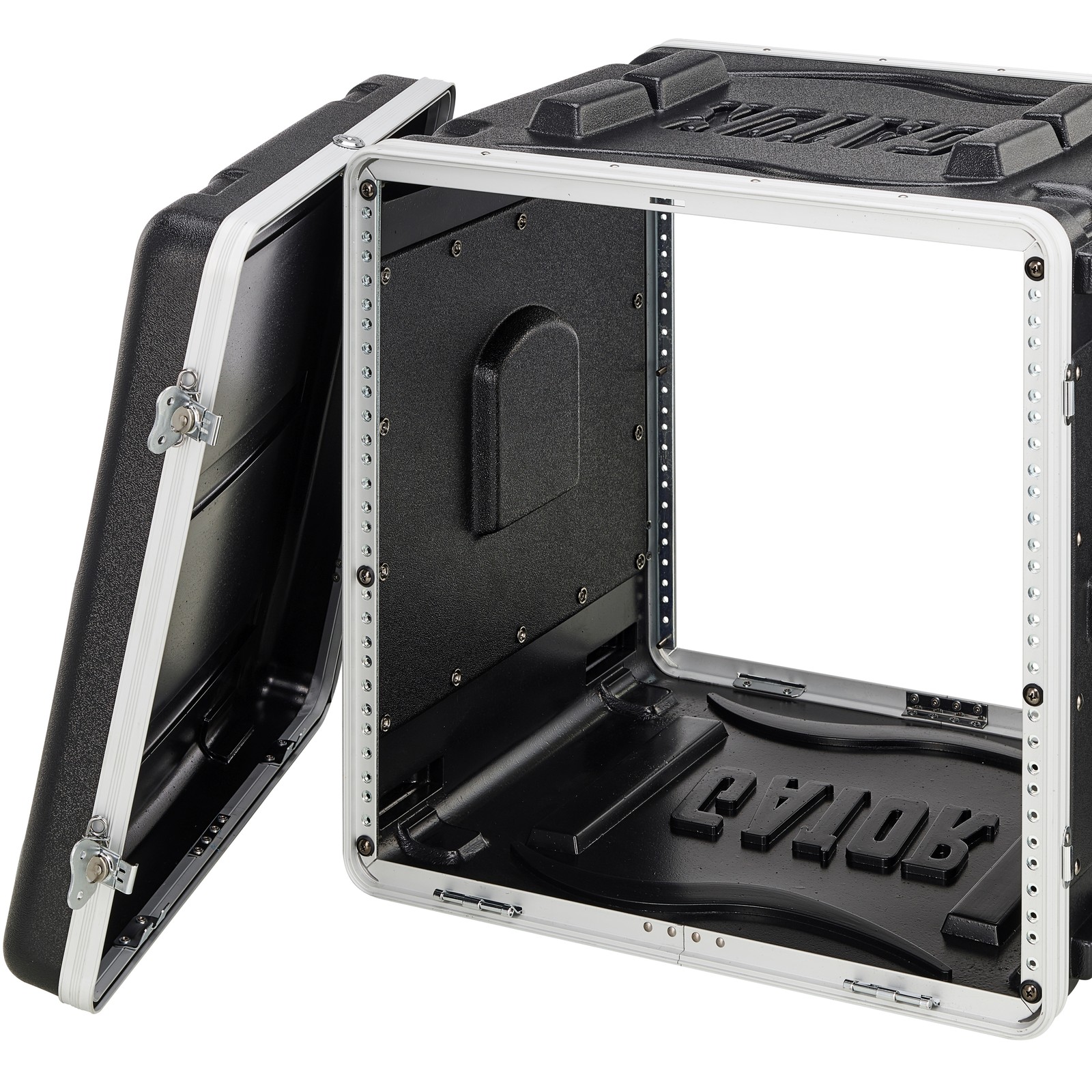 Mit dem GR-10L aus der flachgeformten Rack Case Serie von Gator finden Bands, die permanent auf Tour sind, eine komfortable Möglichkeit, ihre Technik im 19"-Format unterzubringen. Aber auch Veranstaltungstechniker oder Leute, die eine mobile Lösung für ihre Studiotechnik benötigen, finden mit diesem Koffer eine Lösung, ihre Technik flexibel am Einsatzort aufzubauen – vor allem wenn diese zwischen Veranstaltungen umständlich umgebaut werden muss. Dank der komfortablen Griffmulden lässt sich das Case leicht anheben. Beide Türen lassen sich mit den Butterfly-Catches an den verzinkten 7mm-Stahlgestellschienen fest verschließen. So ist die Technik geschützt vor Langfingern oder unautorisierten Personen, die Einstellungen nicht verändern sollen.