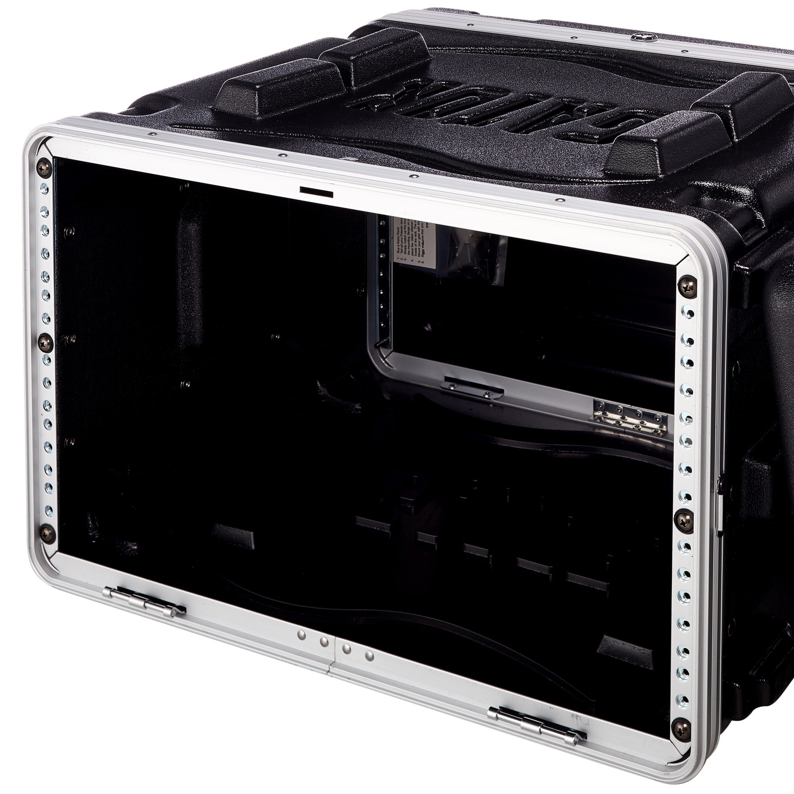 Mit dem GR-6L aus der flachgeformten Rack Case Serie von Gator finden Bands, die permanent auf Tour sind, eine komfortable Möglichkeit, ihre Technik im 19"-Format unterzubringen. Aber auch Veranstaltungstechniker oder Leute, die eine mobile Lösung für ihre Studiotechnik benötigen, finden mit diesem Koffer eine Lösung, ihre Technik flexibel am Einsatzort aufzubauen – vor allem wenn diese zwischen Veranstaltungen umständlich umgebaut werden muss. Dank der komfortablen Griffmulden lässt sich das Case leicht anheben. Beide Türen lassen sich mit den Butterfly-Catches an den verzinkten 7mm-Stahlgestellschienen fest verschließen. So ist die Technik geschützt vor Langfingern oder unautorisierten Personen, die Einstellungen nicht verändern sollen.