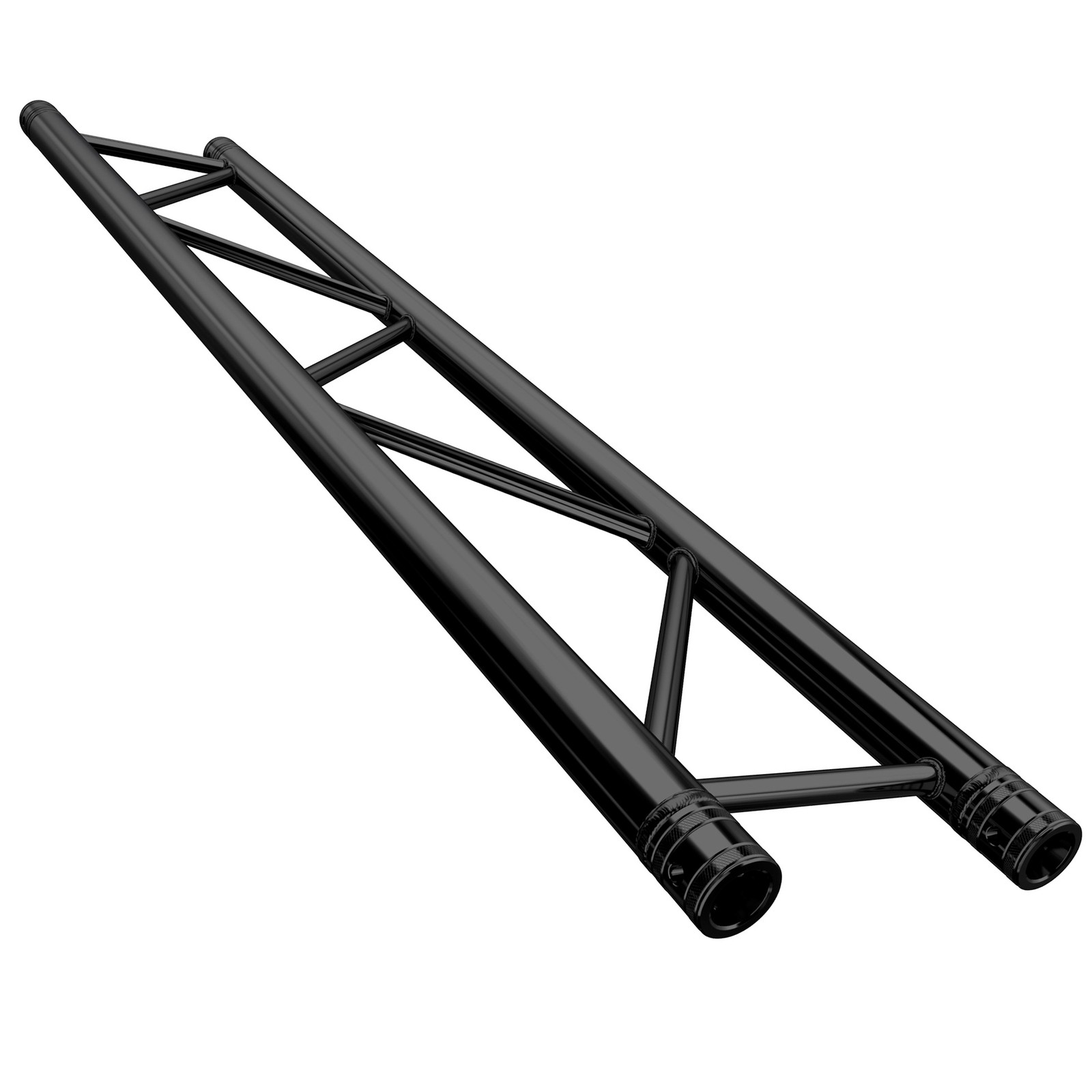 Das F32-Traversensystem von Global Truss ist ein TÜV-geprüftes 2-Punkt-System mit 50x2mm Gurtrohren und 20x2mm Diagonalbracings. Die aus Aluminium bestehenden Module werden über ein spezielles, konisches System miteinander verbunden, welches mithilfe eines Kupferhammers zusammengefügt und zum optimalen Kraftschluss gebracht wird. Trotz einer sehr leichten Bauweise ist das F32-Traversensystem im Gridverbund für eine Spannweite bis 10m ausgelegt. Je nach gewählter Spannweite kann dieses System auch großzügig belastet werden: Bei einem 1m Grid mit 5m Spannweite liegt die angegebene Belastungsgrenze für mittige Einzellasten bei 349kg und für Einzellasten in den 1/3-Punkten bei 262kg. Verringert sich die Spannweite auf 4m, liegt die Belastungsgrenze für mittige Einzellasten sogar bei 439kg.
