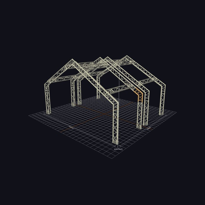 Das F33-Traversensystem von Global Truss ist ein TÜV-geprüftes 3-Punkt-System mit 50 x 2 mm Gurtrohren und 20 x 2 mm Diagonalbracings. Die aus Aluminium bestehenden Module werden über ein spezielles, konisches System miteinander verbunden, welches mithilfe eines Kupferhammers zusammengefügt und zum optimalen Kraftschluss gebracht wird. Ausgelegt ist die F33-Serie für eine Spannweite bis zu 18 m. Trotz einer sehr leichten Bauweise kann dieses System bei moderater Spannweite großzügig belastet werden: Bei einer Spannweite von 10 m liegt die angegebene Belastungsgrenze für mittige Einzellasten bei 170 kg und für Einzellasten in den 1/3-Punkten bei 126 kg. Verringert sich die Spannweite auf 4 m, liegt die Belastungsgrenze für mittige Einzellasten sogar bei satten 438 kg.