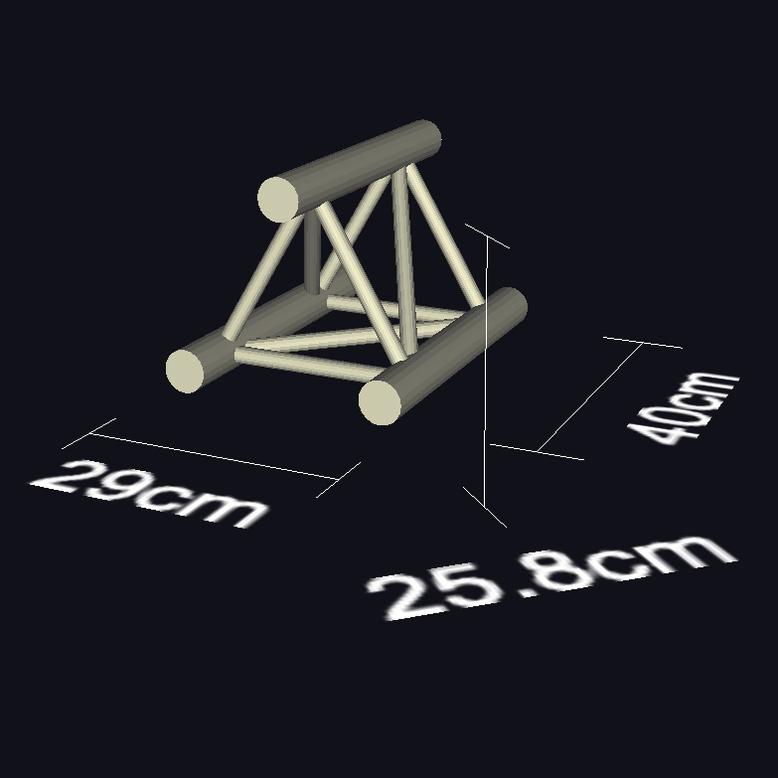Das F33-Traversensystem von Global Truss ist ein TÜV-geprüftes 3-Punkt-System mit 50 x 2 mm Gurtrohren und 20 x 2 mm Diagonalbracings. Die aus Aluminium bestehenden Module werden über ein spezielles, konisches System miteinander verbunden, welches mithilfe eines Kupferhammers zusammengefügt und zum optimalen Kraftschluss gebracht wird. Ausgelegt ist die F33-Serie für eine Spannweite bis zu 18 m. Trotz einer sehr leichten Bauweise kann dieses System bei moderater Spannweite großzügig belastet werden: Bei einer Spannweite von 10 m liegt die angegebene Belastungsgrenze für mittige Einzellasten bei 170 kg und für Einzellasten in den 1/3-Punkten bei 126 kg. Verringert sich die Spannweite auf 4 m, liegt die Belastungsgrenze für mittige Einzellasten sogar bei satten 438 kg.
