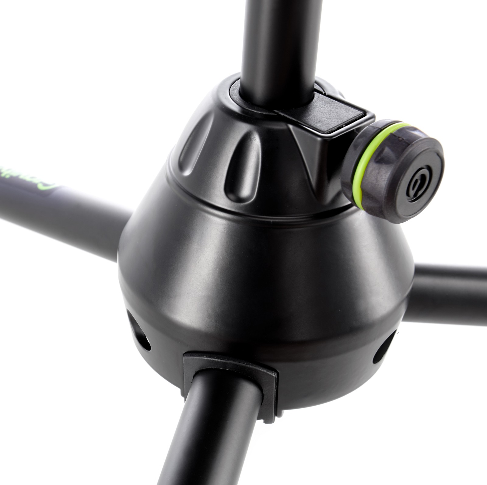 Das mit einem ausziehbaren Galgen mit einer verstellbaren Länge von 510 bis 880 mm ausgerüstete Mikrofonstativ MS 4322 B besteht aus einer besonders kräftigen, pulverbeschichteten Dreibein-Stahlrohrkonstruktion. Eine aus Zinkdruckguss hergestellte Glocke sorgt für weitere Stabilität. Eine große, griffige Spannmuffe erlaubt eine sehr einfache Arretierung der Höhenverstellung, während die 2-Punkt-Galgenverstellung über sehr griffige Knöpfe mit Farbringen verfügt. Der Galgen hat einen Schnellverschluss zur Längenverstellung.