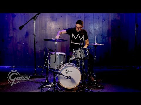 Das Gretsch Brooklyn Micro Kit kommt in einer ultrakompakten Jazz-Konfiguration mit 16"x12" Bass Drum, 10"x07" Tom Tom, 13"x12" Floor Tom und 13"x4,5" Snare Drum. Die Kessel sind in der Farbe Satin Grey (SG) matt lackiert, was ihnen ein klassisches und elegantes Aussehen verleiht. Die Bassdrum verfügt über eine Tomhalterung, einen abnehmbaren Drum-Riser sowie matt lackierte Spannreifen mit einem „Satin Natural“-Finish. Auch die Snaredrum besitzt das helle Natur-Finish und rundet damit das Gesamtbild des Kits harmonisch ab. Die Tomkessel kommen ab Werk mit einlagigen Gretsch Permatone Fellen von Remo USA, wobei die Schlagfelle weiß aufgeraut und die Resonanzfelle klar sind. Die Bassdrum ist mit einem Coated Powerstroke Schlagfell und einem weißen einlagigen Resonanzfell ausgestattet. Diese Kombination bietet einen sehr offenen und resonanten Klang.
