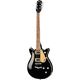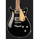 Im Gegensatz zu den anderen, meist sehr pompös wirkenden, Instrumenten von Gretsch gibt die G5222 Electromatic Double Jet BT V-St. Black ein nahezu spartanisches Bild ab. „Weniger Glanz, dafür mehr Rock 'n' Roll“, lautet die Devise dieser auf dem Double-Jet-Design basierenden Gitarre. Sie besteht aus einem gekammerten Mahagonikorpus mit Ahorndecke, einem Mahagonihals sowie zwei BroadTron-Pickups und erzeugt damit einen enorm druckvollen Klang. Die erschwingliche Ausführung der „Malcolm Young Gitarre“ besitzt weiterhin ein Thin-U-Halsprofil für eine komfortable Bespielbarkeit und zeigt sich durch ihre solide Hardware mit der Gretsch Adjusto-Matic-Brücke, dem schicken V-Stoptail-Saitenhalter und den DieCast-Mechaniken zuverlässig beim Halten der Stimmung. Darüber hinaus bietet der Mastervolume-Regler im unteren Cutaway weitere Möglichkeiten, um den Sound des Instruments jederzeit unter Kontrolle halten.