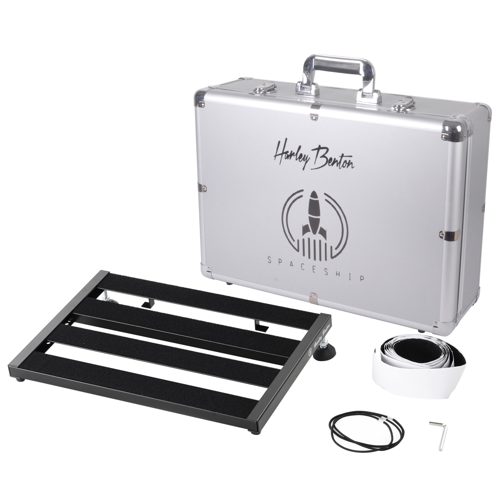 Wer Ordnung in seinem Effektpark schätzt und Wert auf einen reibungslosen Ablauf seiner Performance im Proberaum oder auf der Bühne legt, der kommt um die Anschaffung eines Pedalboards kaum herum. Das Harley Benton SpaceShip 40 sorgt für die gewünschte Ordnung und Übersicht und bietet mit seinen vier Ebenen genügend Platz für kleine, große und ganz große Effektgeräte. Trotz des geringen Gewichts von nur 1,26kg zeigt sich der pulverbeschichtete Rahmen sehr robust und lässt sich zudem dank der zwei einstellbaren Füße sowohl in der Höhe als auch in der Neigung flexibel einstellen. Neben den notwendigen Materialien zur Fixierung der Effekte auf dem Board befindet sich im Lieferumfang dieses Bundles auch ein stabiler Koffer aus Aluminium, in welchem die wertvollen Pedale dauerhaft sicher aufbewahrt und transportiert werden können.
