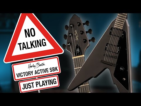 Die Harley Benton Victory Active SBK präsentiert sich im traditionellen V-Style mit ihren zwei aktiven High-Gain-Humbuckern als eine echte Rockmaschine, die mal wieder für einen für Harley Benton typischen, günstigen Preis zu bekommen ist. Neben dem kernigen Klang weiß die mattschwarze Victory Active SBK zudem durch ihre komfortable Bespielbarkeit auf einem Modern-C-Halsprofil zu gefallen, was insbesondere Einsteigern bei den ersten Schritten entgegenkommt. Selbst auf solide Hardware muss man in dieser niedrigen Preisklasse nicht verzichten, die Kombination aus Tune-O-Matic Steg, Tailpiece und DieCast-Mechaniken an der Kopfplatte sorgen für einen im wahrsten Sinne des Wortes „reibungslosen“ Betrieb ohne Verstimmungen.