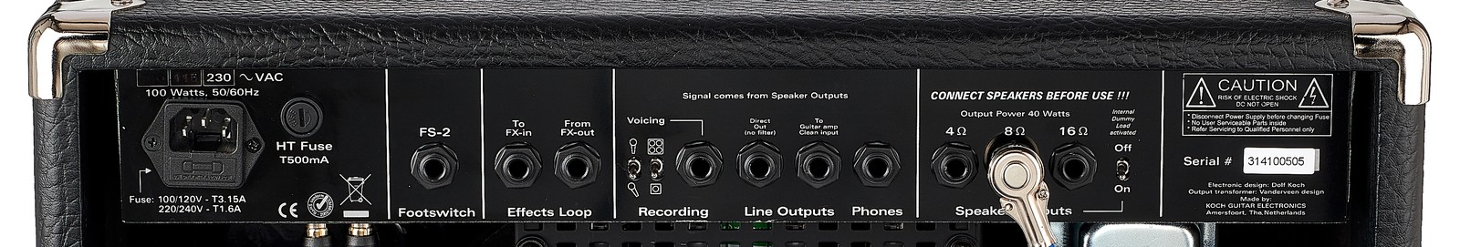 Die niederländische Firma Koch Amps stellt seit 1988 hochwertige Gitarrenverstärker her, wobei der reine, unverfälschte Klang des angeschlossenen Instruments immer oberste Priorität hatte und bis heute hat. Hinter den Amps im Vintage-Design steckt eine Elektronik mit den modernsten Features, neben reinrassigen Röhrenamps der Boutique-Klasse gibt es aber auch eine Reihe weiterer, günstigerer Verstärker im Programm, die mit der patentierten ATR-Schaltung einen nahezu perfekten Röhrensound nachbilden und in vielen unterschiedlichen Größen erhältlich sind. Weiterhin befinden sich im Sortiment des Herstellers eine Reihe von Pedal-Preamps, Endstufen, Boxen, Power-Soaks oder auch selektierte Röhren für jeden Typ Verstärker.