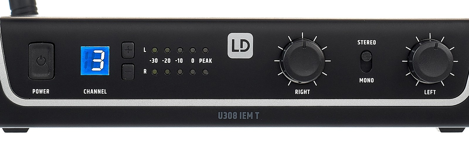 Der U308 IEM HP-Sender hat eine Ausgangleistung von 10 mW. Aus zwölf Kanälen wählt man eine freie Frequenz. Die an der Senderrückseite angebrachte Antenne ist dank eines BNC-Verschlusses abnehmbar. Ebenfalls auf der Rückseite liegen der Netzanschluss sowie zwei XLR-Klinken-Kombibuchsen, in die aus dem Mischpult das Monitorsignal in mono oder stereo geschickt wird. Zur Anpassung der Mix-Pegel dienen zwei Regler auf der Frontseite des Senders. Zwei LED-Ketten informieren über die Stärke der Audiosignale. Gefunkt wird in den Bereichen zwischen 823 und 832 sowie 863 und 865 MHz, die in Deutschland erlaubnisfrei genutzt werden können. Der Sender kommt in einem stabilen Metallgehäuse daher und kann mit dem beiliegenden Zubehör in ein Rack eingebaut werden. Für den Anschluss des beiliegenden Kopfhörers hat der Recever eine Miniklinkenbuchse. Im Lieferumfang enthalten sind Sender mit Netzteil und Rackmontage-Kit sowie der Empfänger mit Kopfhörern.