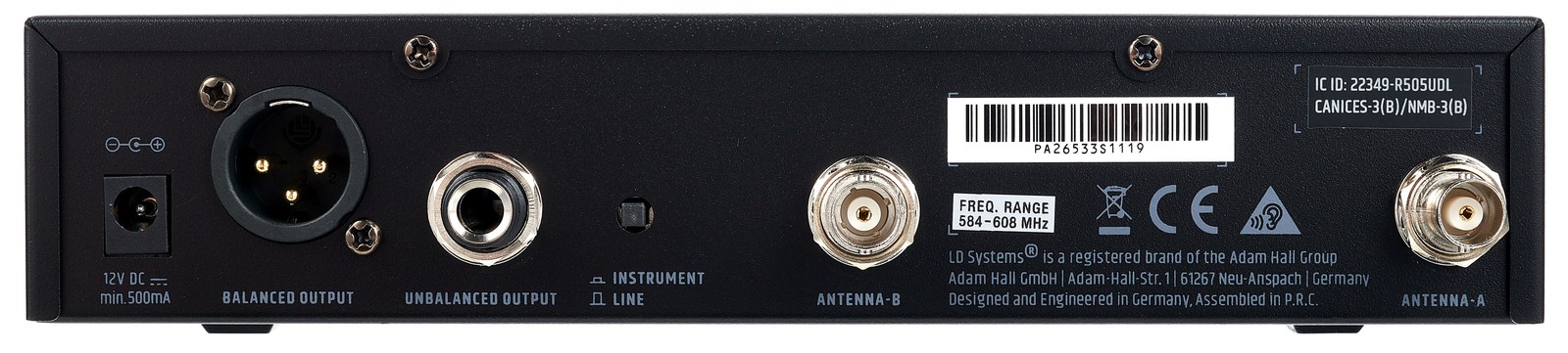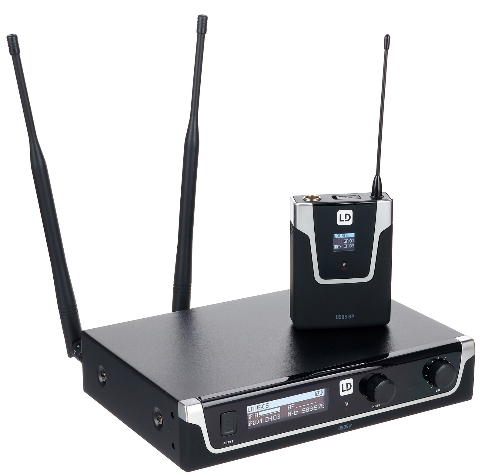 Dank seines True Diversity-Empfangs verarbeitet das LD Systems U505 BPH stets dasjenige von zwei parallel empfangenen Funksignalen, das die bessere Qualität aufweist. Damit lässt sich die Drahtlosanlage auch in Clubs und Hallen mit parallelen Wänden einsetzen. Aufgrund der Tatsache, dass die analoge Drahtlosanlage zusätzlich auch einen Pilotton überträgt, ist nicht nur eine hohe Betriebssicherheit gegeben und Interferenz-freier Empfang möglich, sondern es können auch Infodaten übertragen werden. Und so kann der Batteriestatus des Handsenders auch auf dem Display des stationären Empfängers abgelesen werden. Das Set arbeitet mit Audio von 30 Hz bis 16 kHz und deckt damit alle Frequenzen ab, die nicht nur für Sprache und Gesang relevant sind, sondern auch solche, die von Instrumenten bis in den Bassbereich hinein geliefert werden.