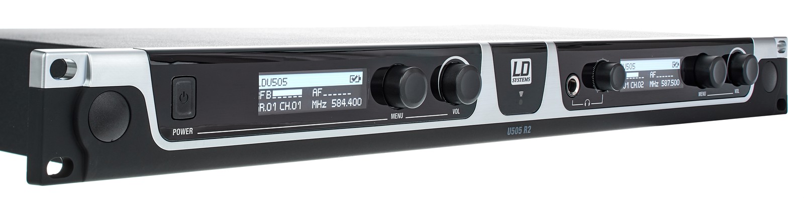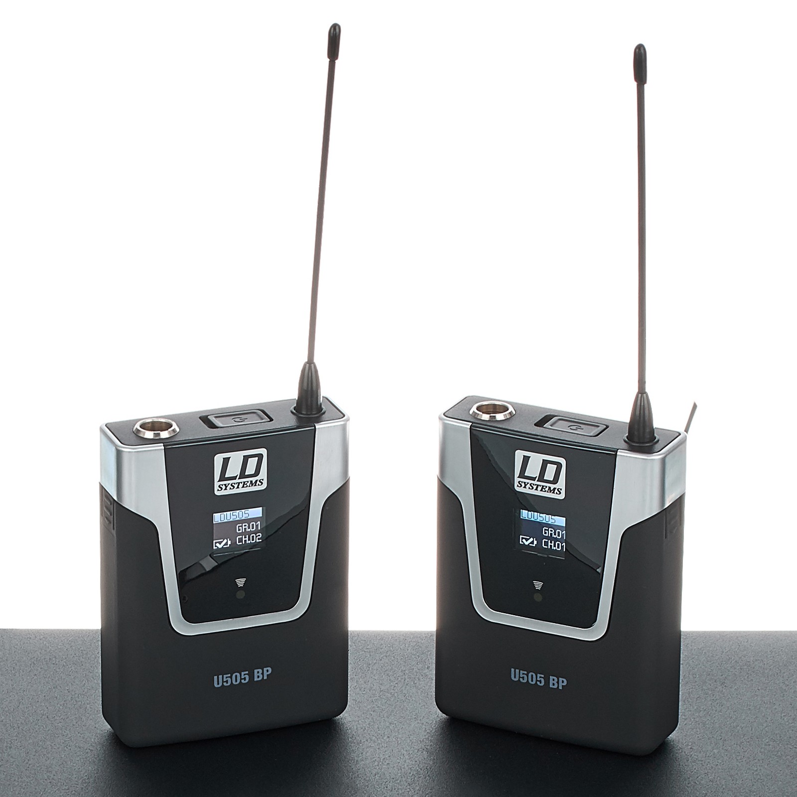Das LD Systems U505 BPH2 ist ein duales Wireless-Set mit zwei Headset-Kondensatormikrofonen, zwei Taschensendern und stationärem Doppelempfänger, mit dem sich für wenig Geld eine Drahtlosübertragung auch über größere Strecken von bis zu 100 m einrichten lässt. Sein Preis-Leistungs-Verhältnis ist außergewöhnlich, weil es für einen attraktiven Kaufpreis gleich in doppelter Ausführung Profi-Features wie True Diversity-Empfang, automatischen Frequenzscan, Infrarot-Synchronisation und Pilotton bietet. Vorteilhaft ist neben den hellen OLED-Displays der Bodypacks und Receivern auch, dass sich die Taschensender nicht nur mit den beiliegenden Mikrofonen, sondern auch mit Instrumenten wie Gitarre und E-Bass betreiben lassen. Dadurch ist der Käufer für jede der beiden Funkstrecken nicht auf eine Funktion festgelegt. Für ein Drahtlos-System dieser Preiskategorie ist außerdem der zum Lieferumfang des Bundles gehörende Plastik-Transportkoffer etwas Besonderes.