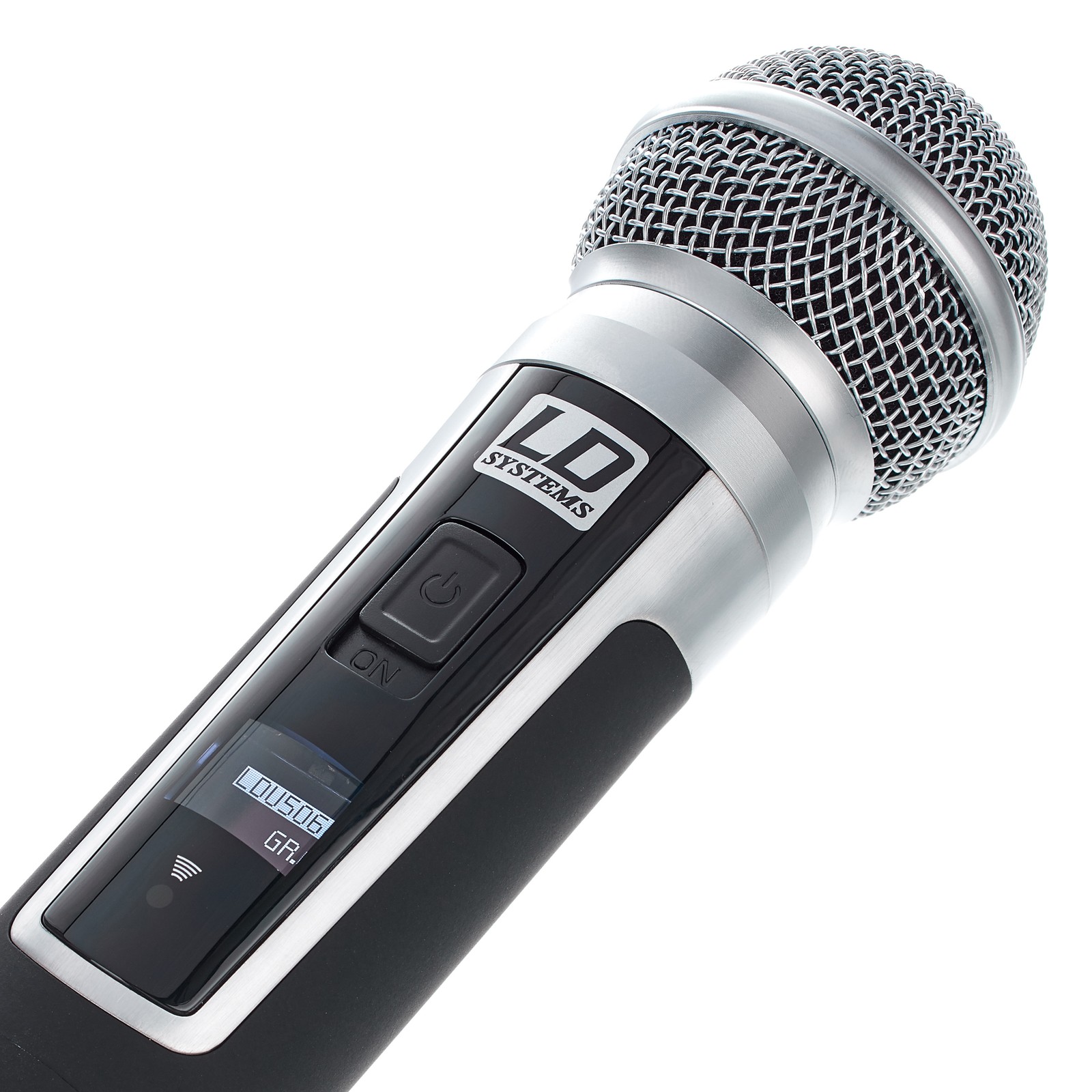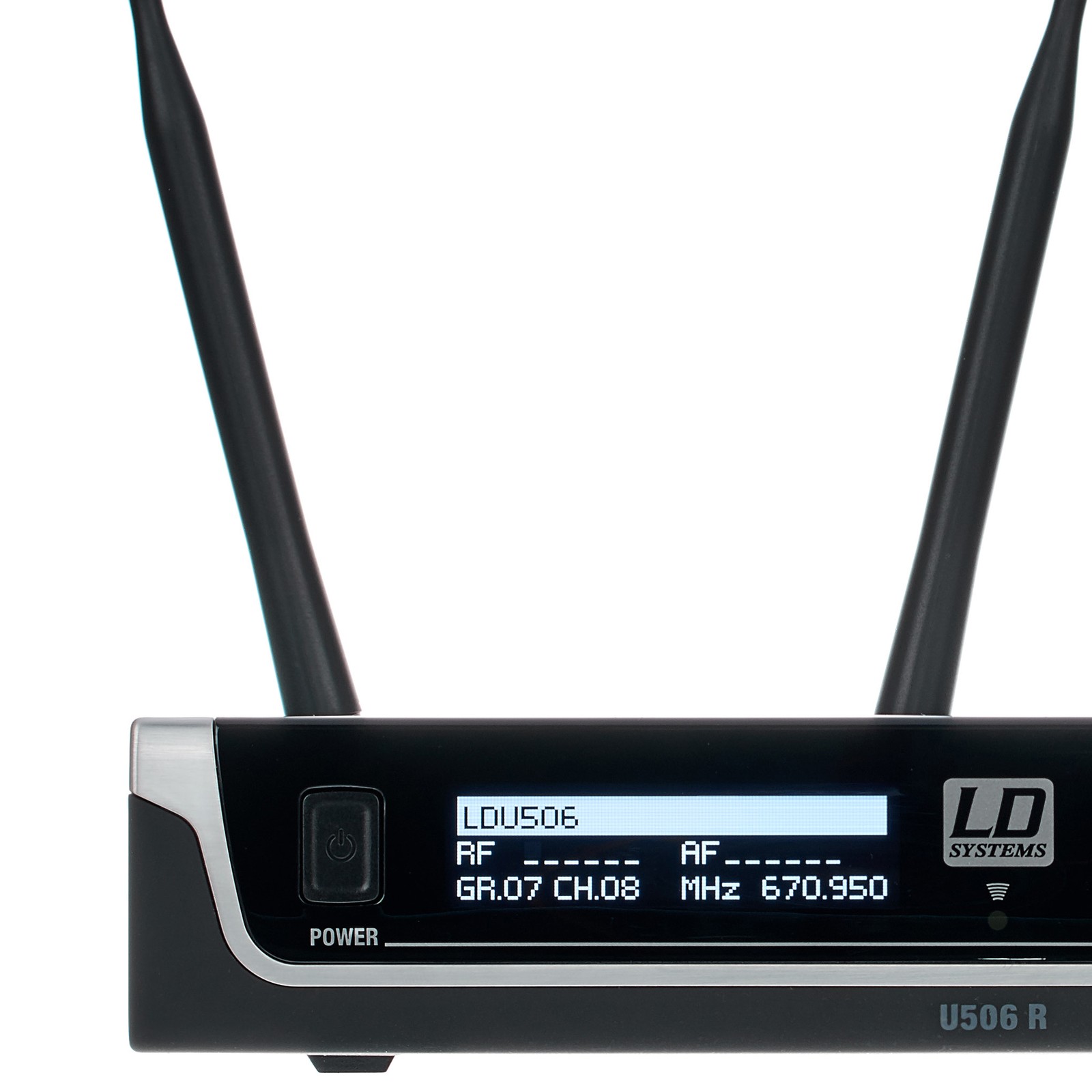 Das LD Systems U506 HHD ist ein Funkmikrofon-Set mit stationärem Empfänger, mit dem sich für wenig Geld eine Drahtlosübertragung auch über größere Strecken von bis zu 100 m einrichten lässt. Sein Preis-Leistungs-Verhältnis ist außergewöhnlich, weil es Profi-Features wie True Diversity-Empfang, automatischen Frequenzscan, Infrarot-Synchronisation und Pilotton bietet. Ungewöhnlich in dieser Preisklasse ist nicht nur das helle OLED-Display, sondern auch, dass der Kopf des Handsenders ausgetauscht werden kann. So bleibt der Käufer beim Mikrofon nicht auf einen Kapseltyp festgelegt. Und mit dem zum Bundle gehörenden Plastik-Transportkoffer ist auch der Lieferumfang für ein Drahtlos-System im Budgetbereich etwas Besonderes.