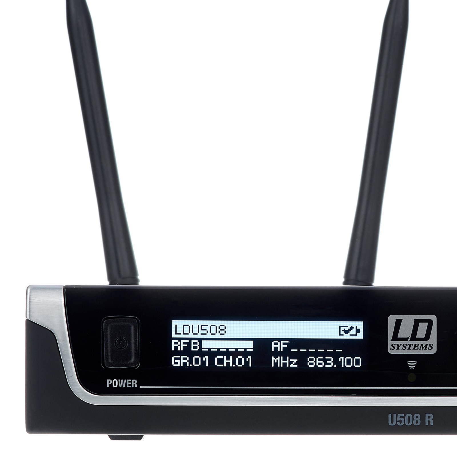 Dank seines True Diversity-Empfangs verarbeitet das LD Systems U508 BPHH stets dasjenige von zwei parallel empfangenen Funksignalen, das die bessere Qualität aufweist. Damit lässt sich die Drahtlosanlage auch in Clubs und Hallen mit parallelen Wänden einsetzen. Aufgrund der Tatsache, dass die analoge Drahtlosanlage zusätzlich auch einen Pilotton überträgt, ist nicht nur eine hohe Betriebssicherheit gegeben und Interferenz-freier Empfang möglich, sondern es können auch Infodaten übertragen werden. Und so kann der Batteriestatus des Handsenders auch auf dem Display des stationären Empfängers abgelesen werden. Das Mikrofon arbeitet mit Frequenzen von 70 Hz bis 16 kHz und deckt damit alle Frequenzen ab, die für Sprache und Gesang relevant sind. Sein Bodypack reicht sogar bis 30 Hz hinab und kann auch mit Instrumenten bis hin zu E-Bässen mit tiefer H-Saite genutzt werden.